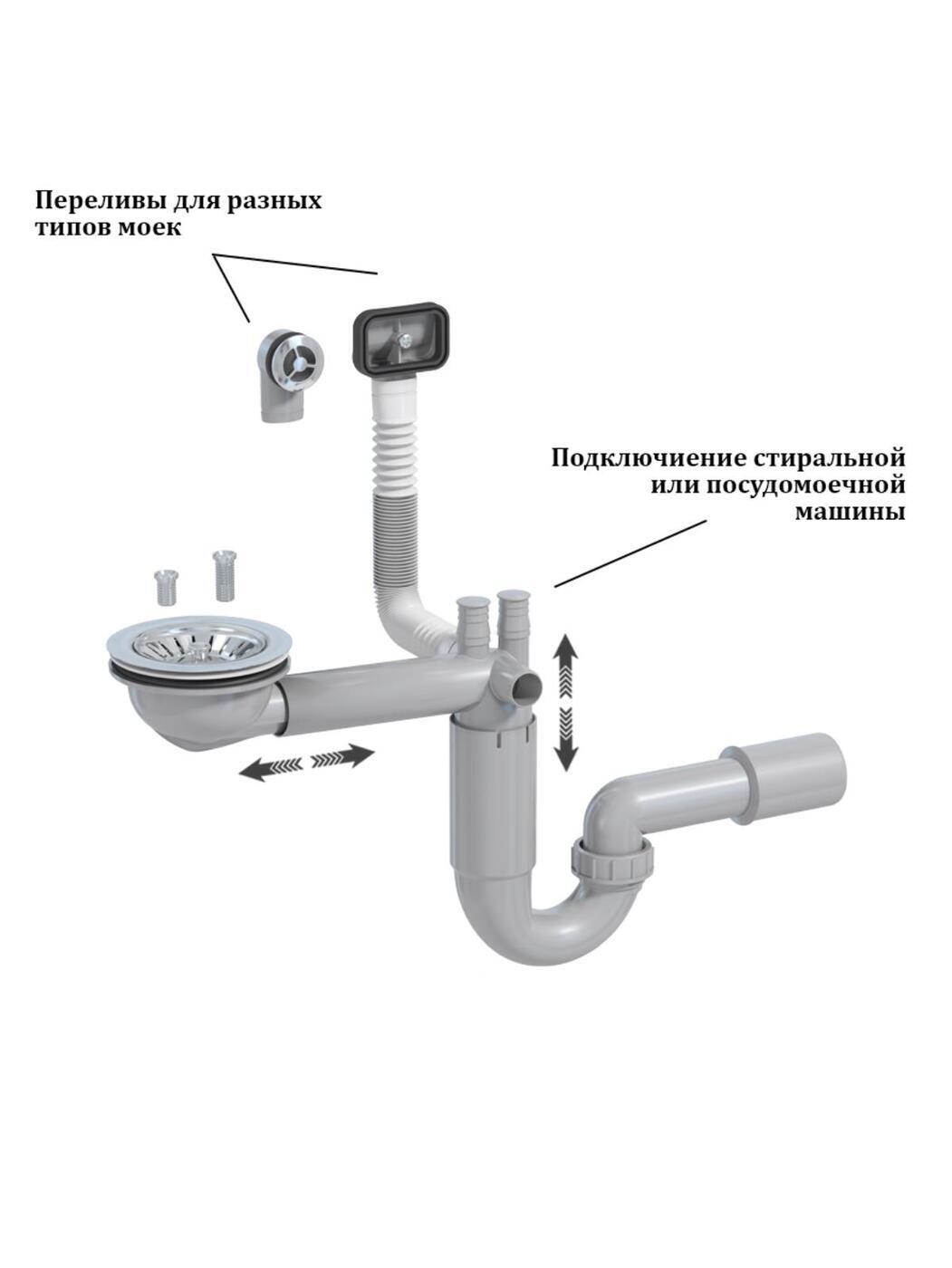 Сифон телескопический-трансформер для кухонной мойки, №5 Prevex