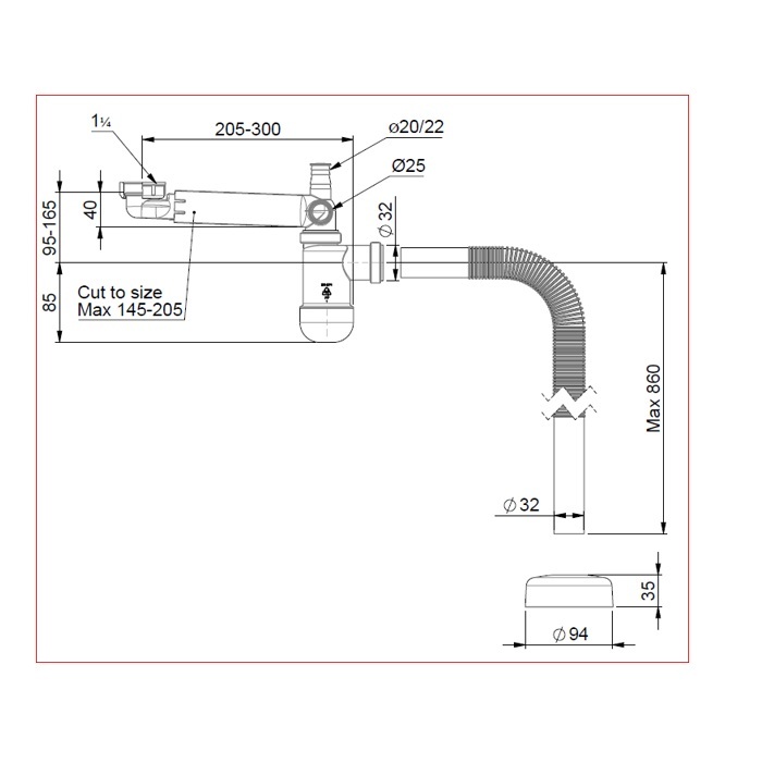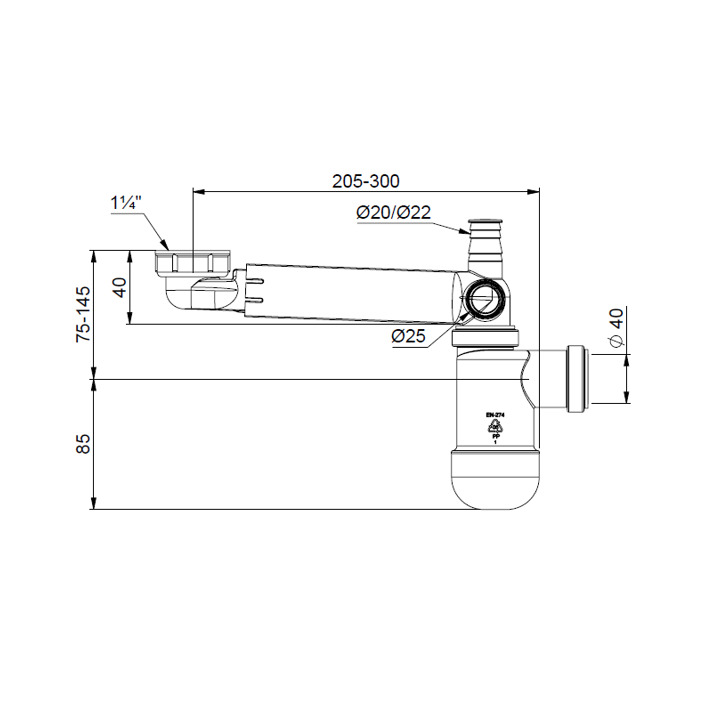 Сифон для кухонной мойки Prevex P-loc без выпуска и гофрой 40/50, PL1-N2NF5-001