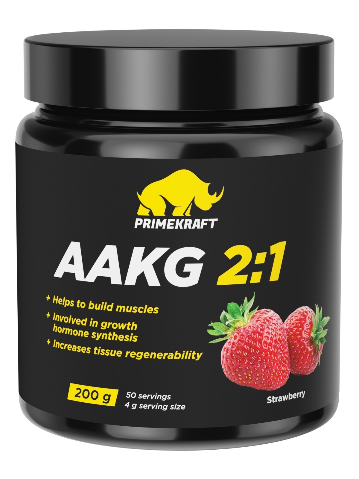Аминокислоты PRIMEKRAFT "AAKG 2:1" (Аргинин альфа-кетоглутарат), Клубника, 200 г