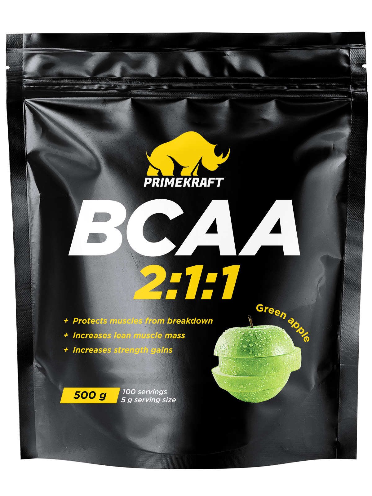 Аминокислоты PRIMEKRAFT "BCAA 2:1:1", Зеленое яблоко, 500 г