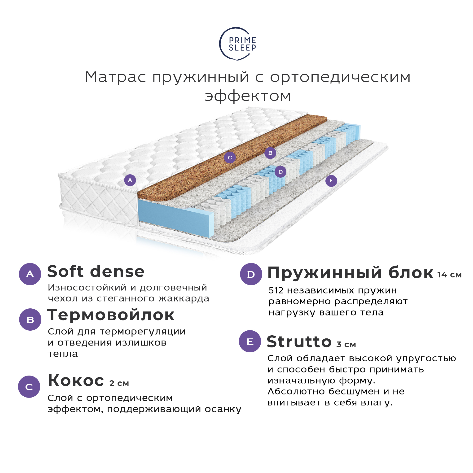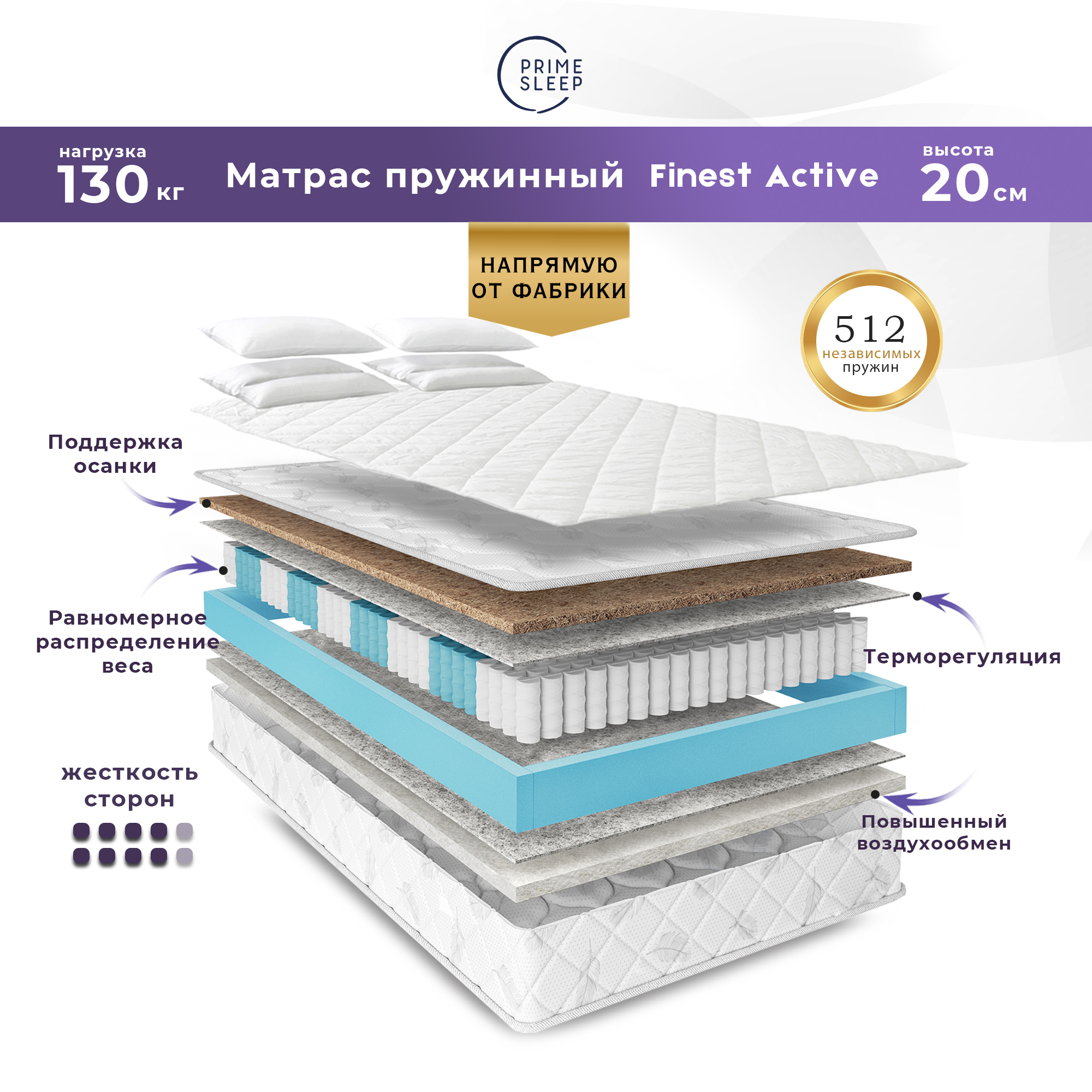 Ортопедический матрас, Матрас PRIME SLEEP Finest Active, Независимые пружины, 75х190 см