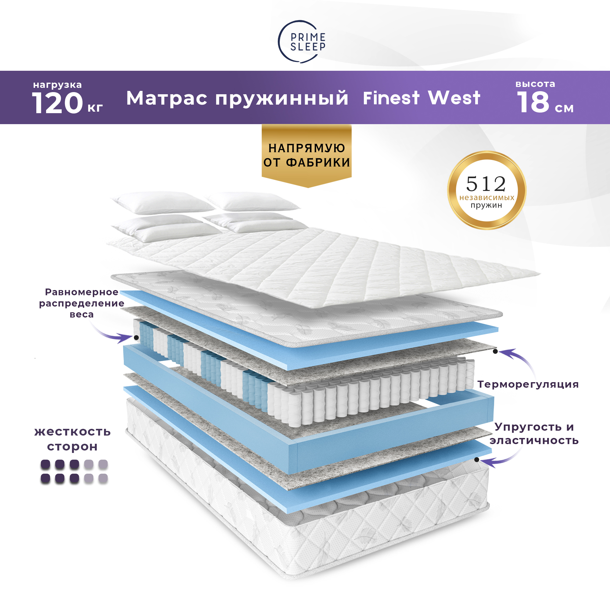 Ортопедический матрас, Матрас PRIME SLEEP Finest West, Независимые пружины, 70х195 см
