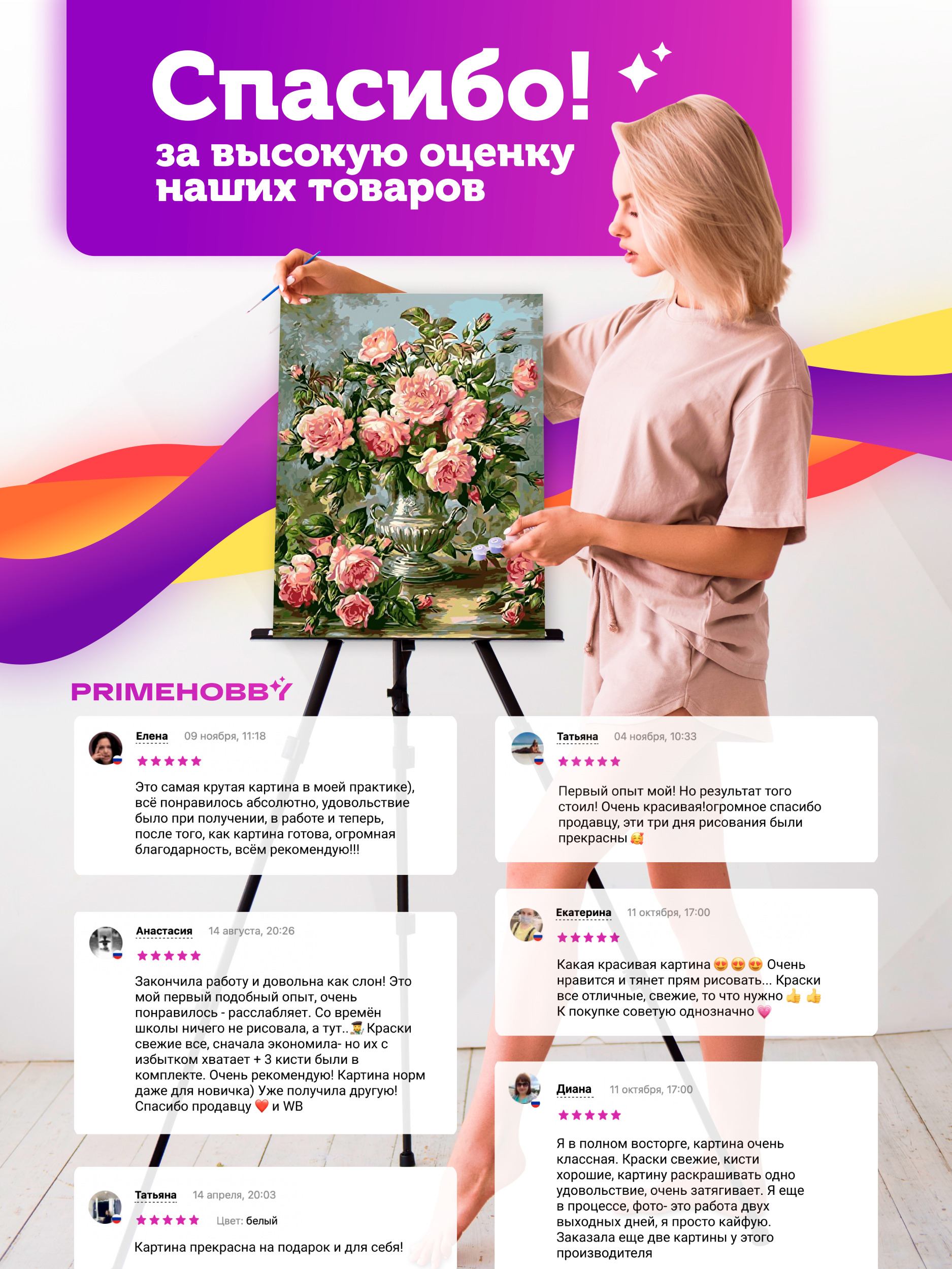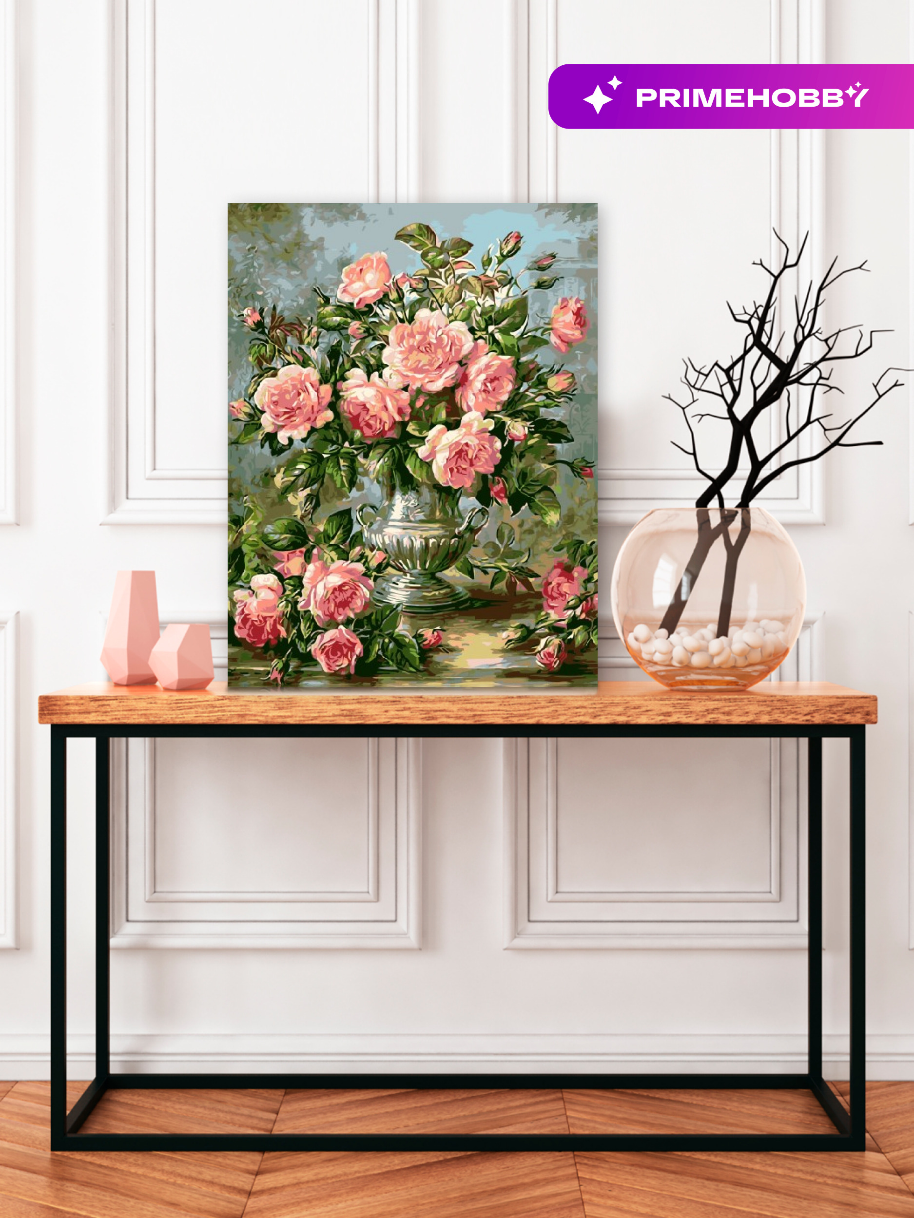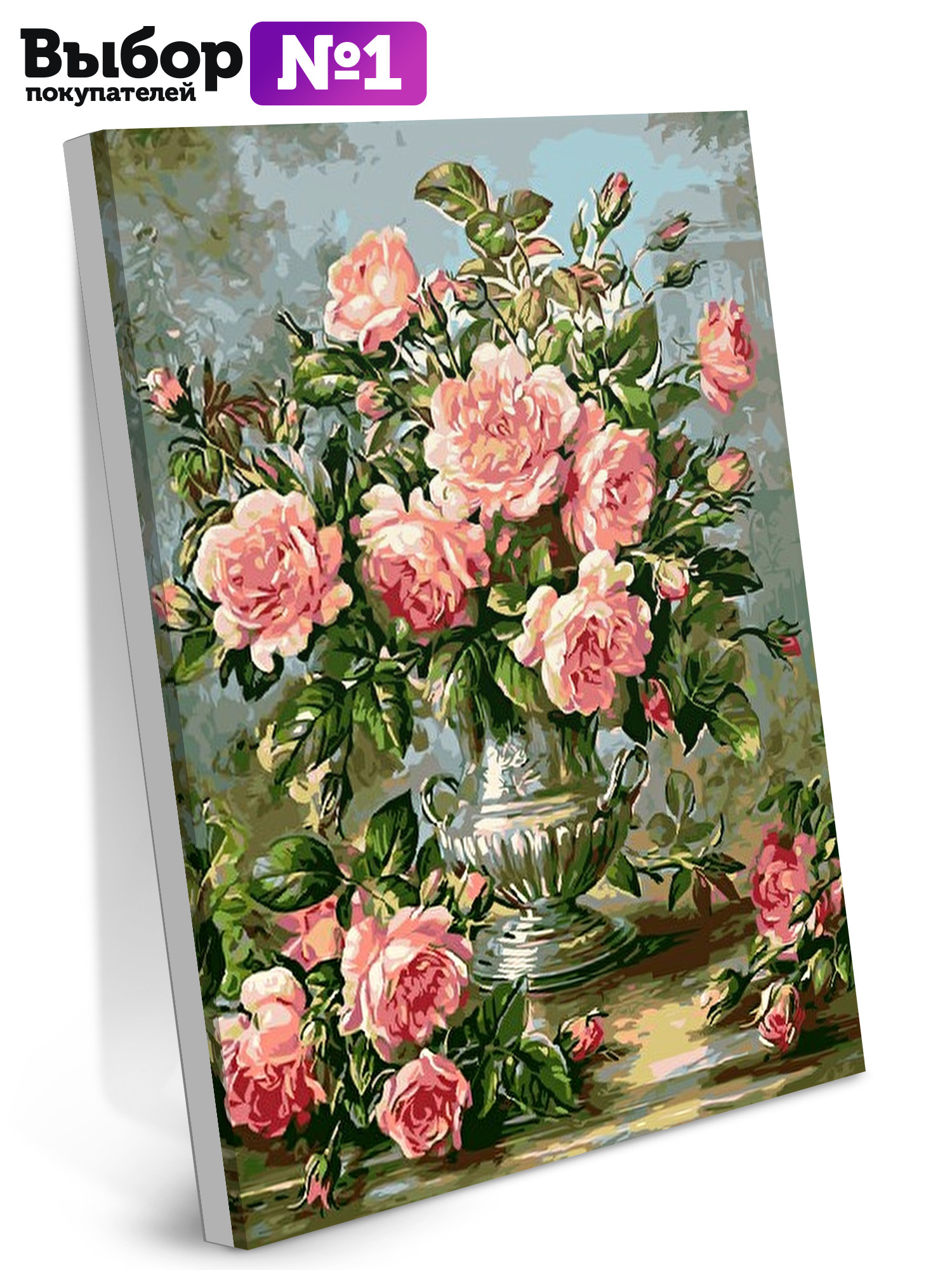 Картина по Номерам на Холсте 40 х 50 40х50 Цветы Розы Ваза с розами Букет роз На Подрамнике