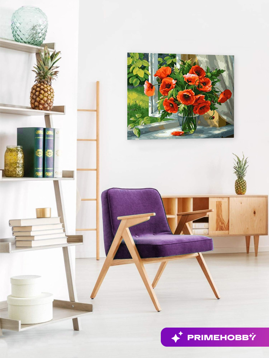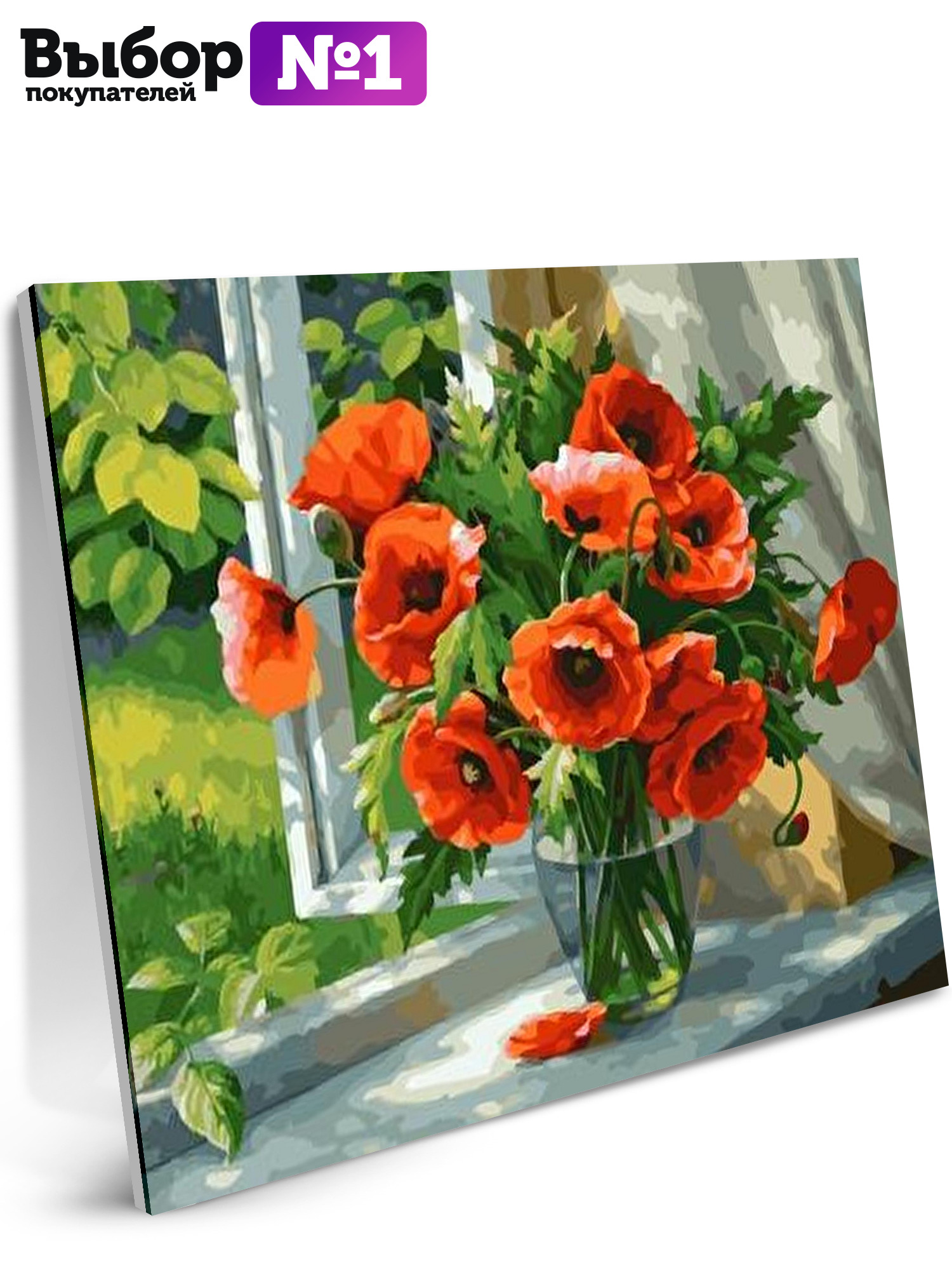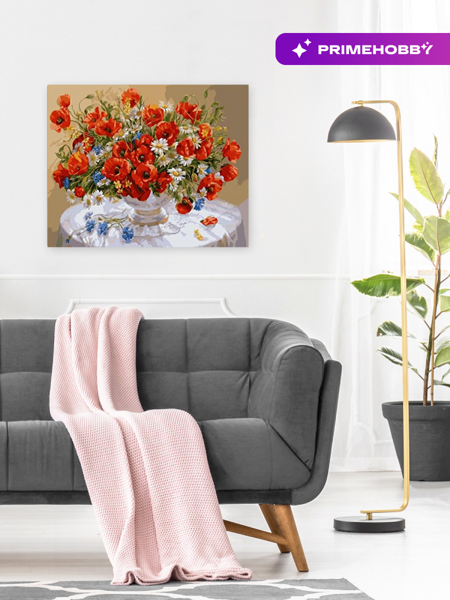 Картина по Номерам на Холсте 40 х 50 40х50 Полевые Цветы Красные Маки Букет в вазе На Подрамнике
