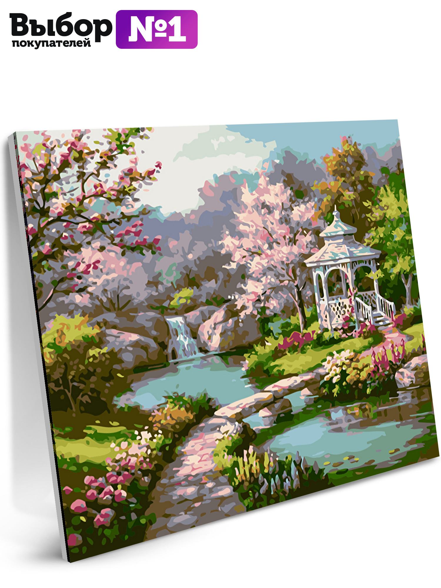 Картина по Номерам на Холсте 40 х 50 40х50 Пейзаж Беседка Цветы Сакура Природа Лето На Подрамнике