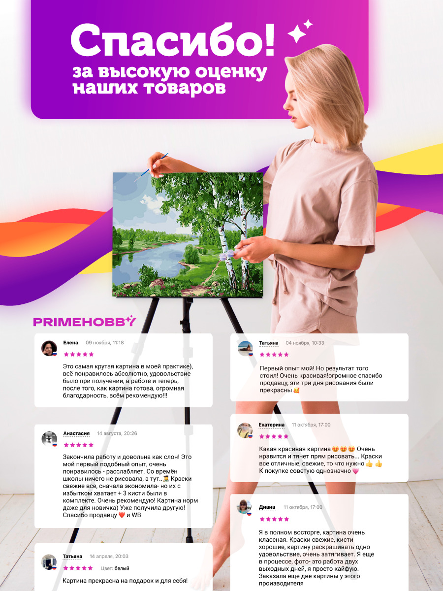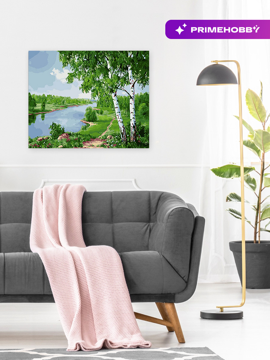Картина по Номерам на Холсте 40 х 50 40х50 Природа Родные Берёзки Пейзаж Лес Лето На Подрамнике