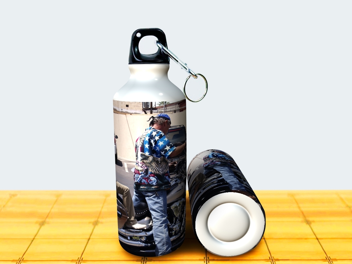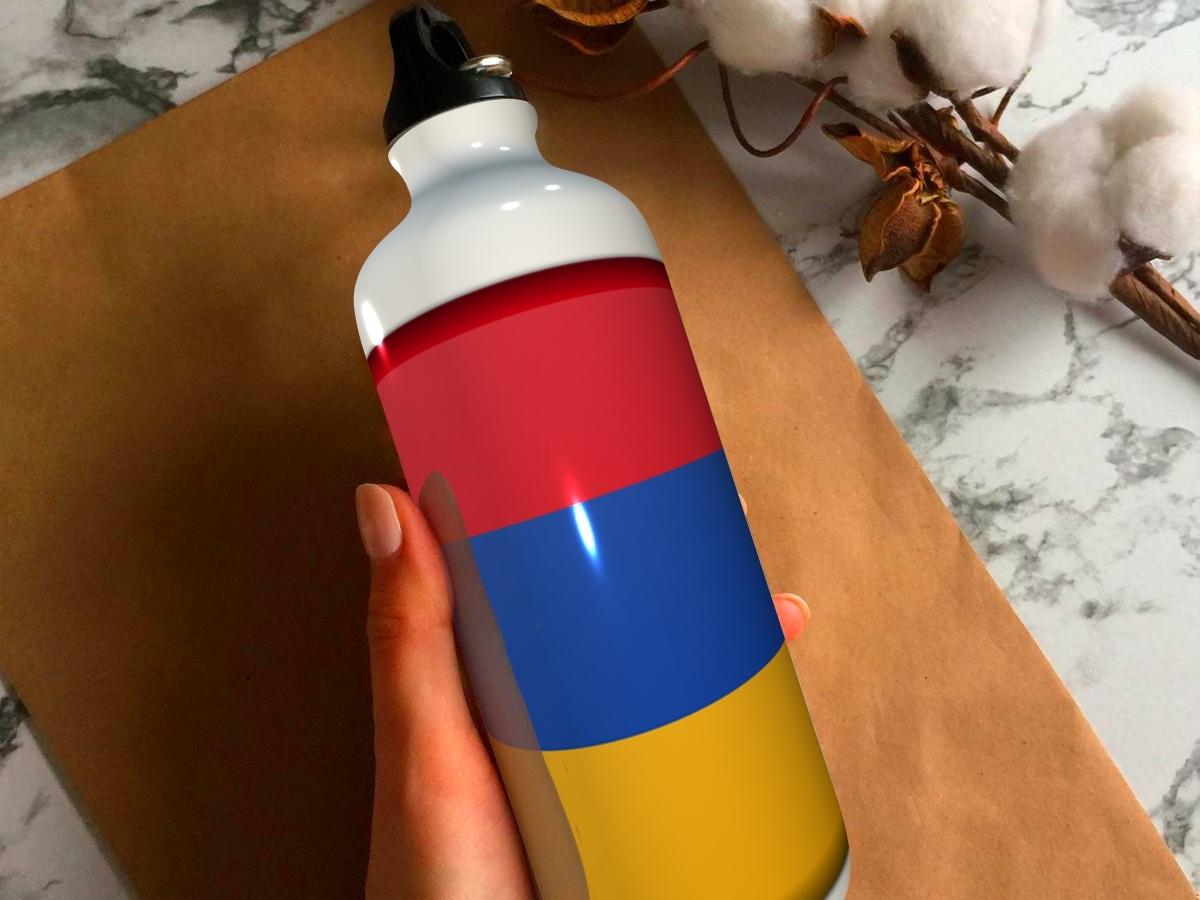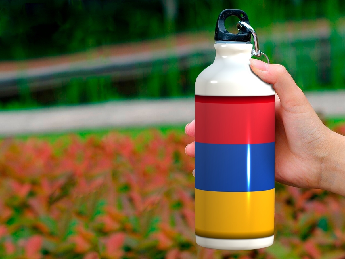 Бутылка фляга для воды "Армения, знамя, украшение" 750 мл. с карабином и принтом