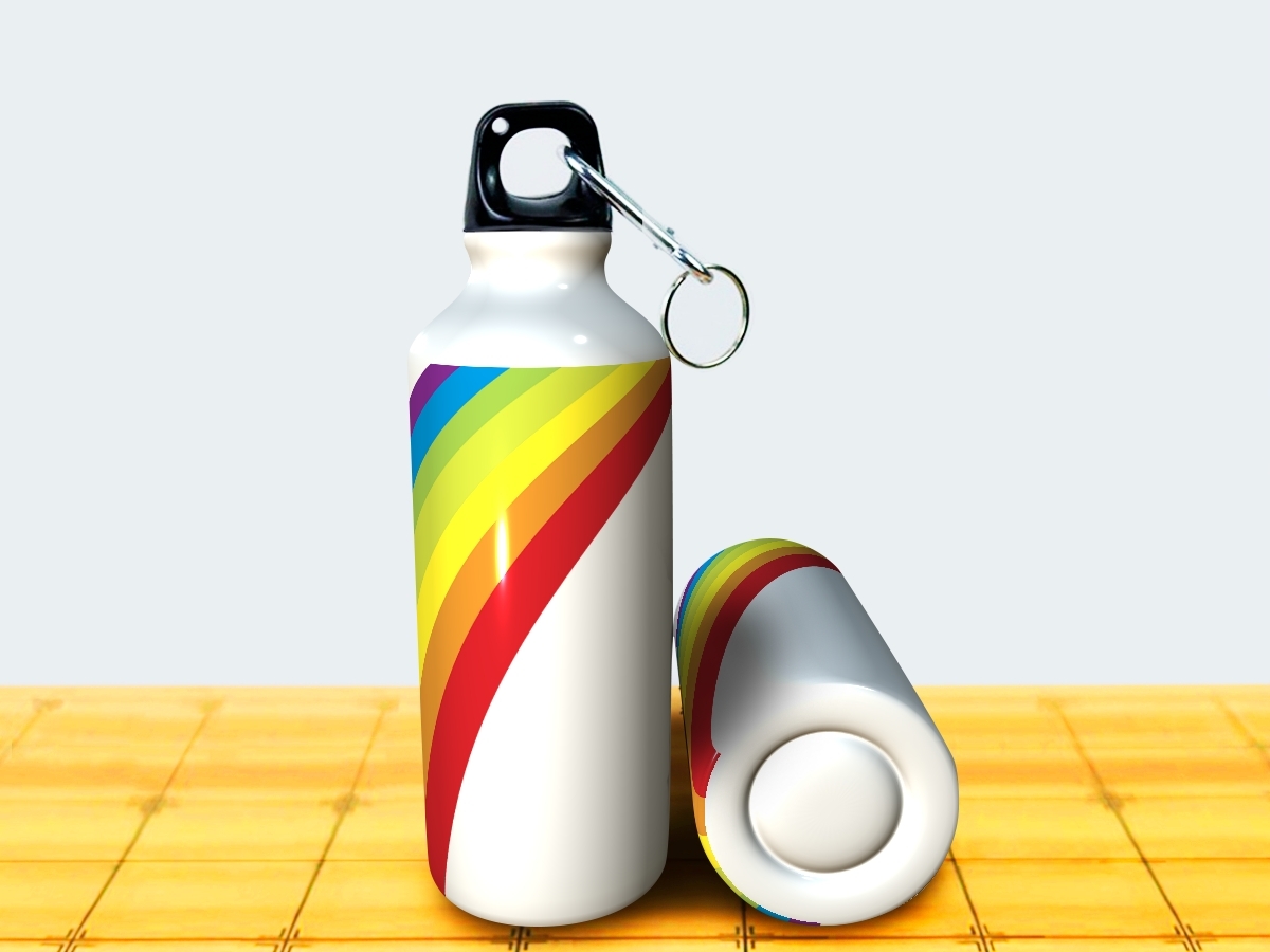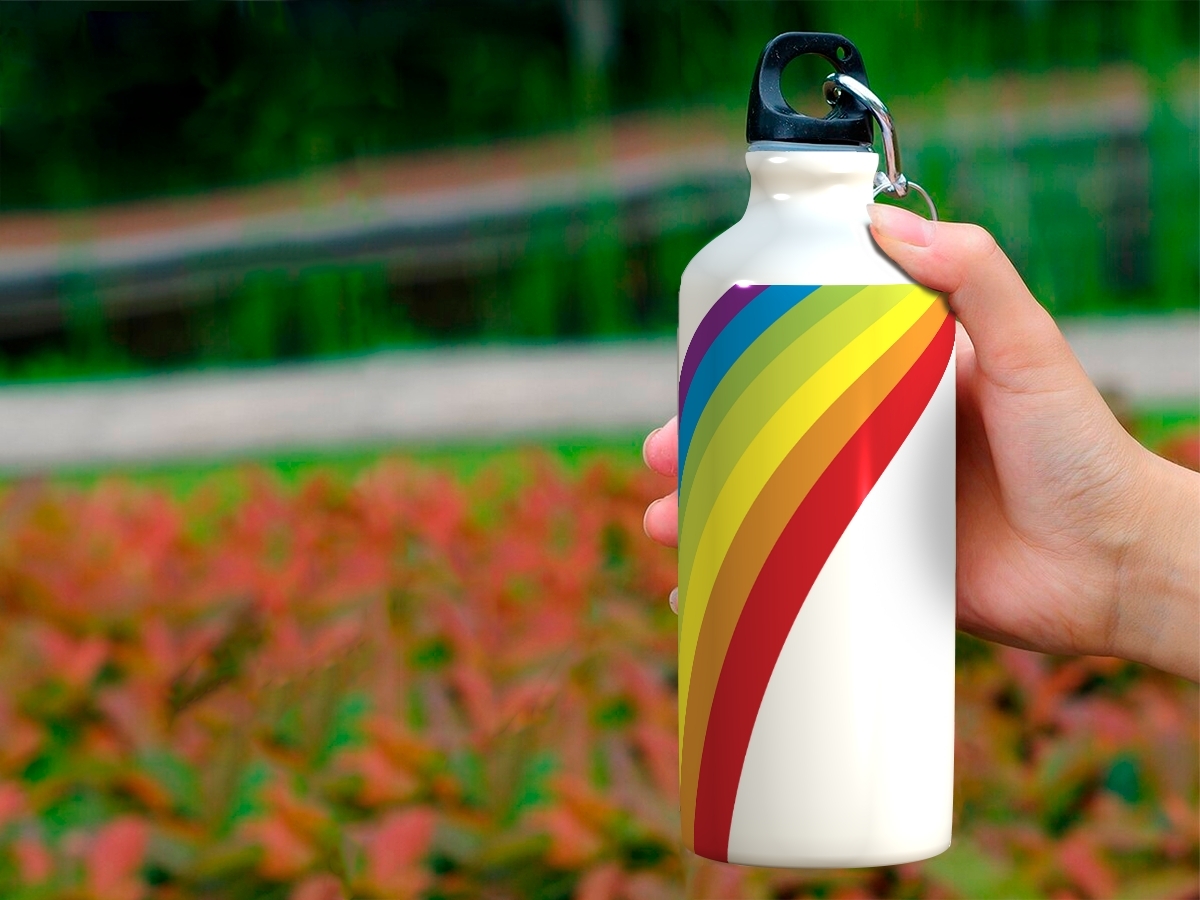 Бутылка фляга для воды "Радуга, цвета, красивая" 750 мл. с карабином и принтом