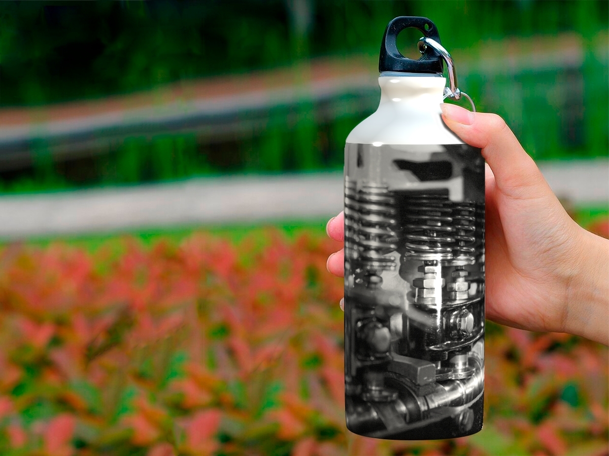 Бутылка фляга для воды "Мотор, двигатель, масло" 750 мл. с карабином и принтом