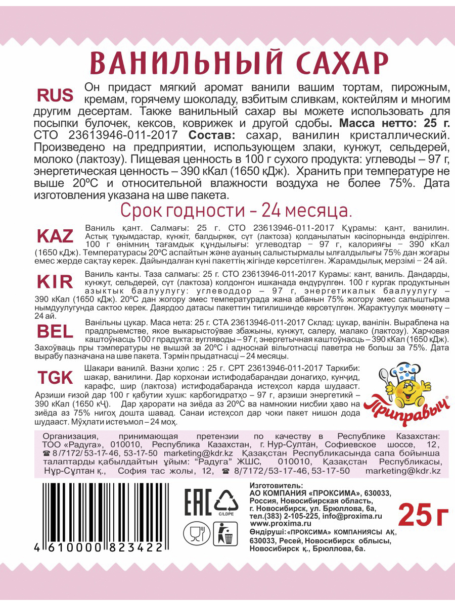 Ванильный сахар, 10 штук по 25 г, Приправыч