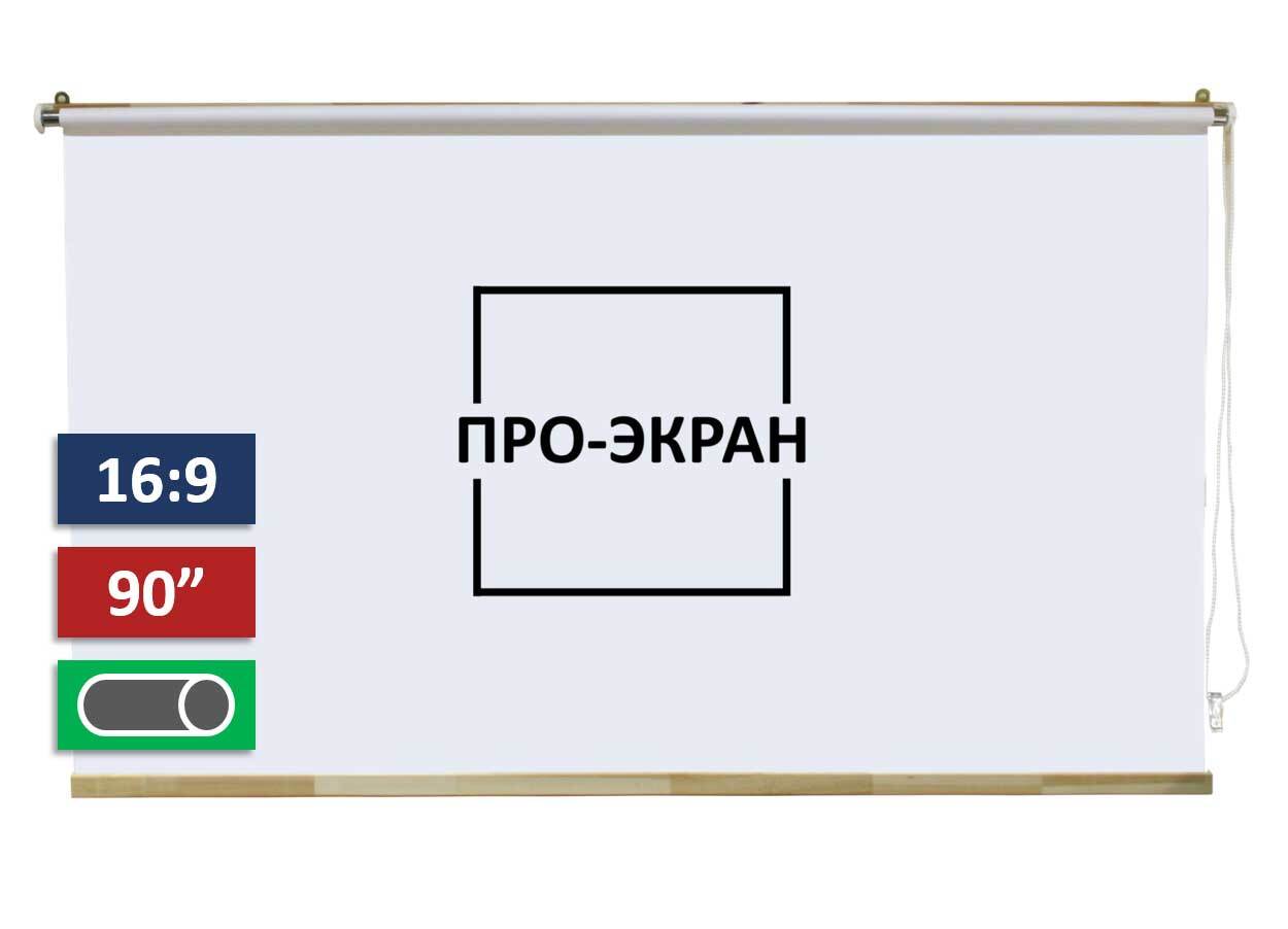 Рулонный экран для проектора ПРО-ЭКРАН 200х112 см (16:9), 90 дюймов