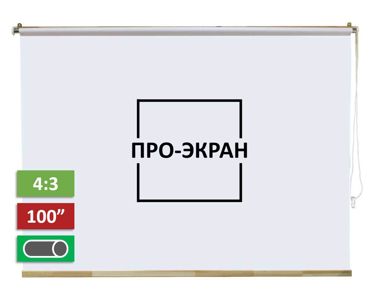 Рулонный экран для проектора ПРО-ЭКРАН 200х150 см (4:3), 100 дюймов