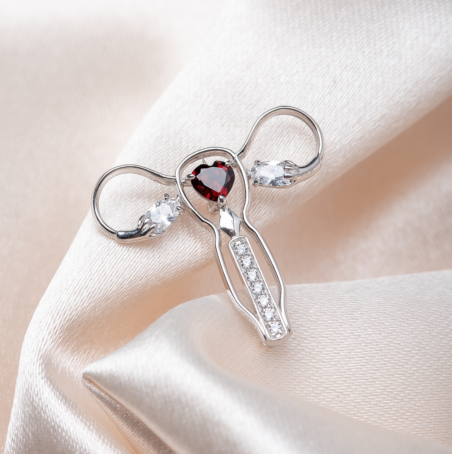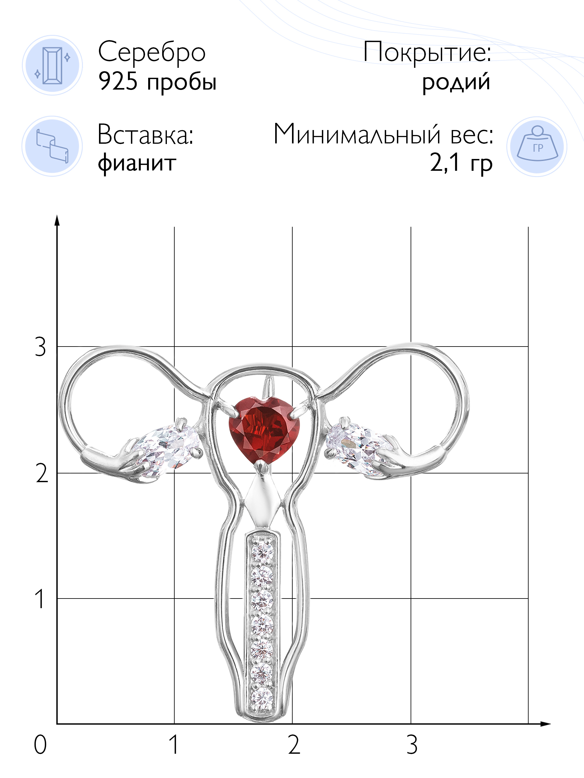 Pro-Medicus Брошь Матка серебро 925 пробы с прозрачными и красным фианитами