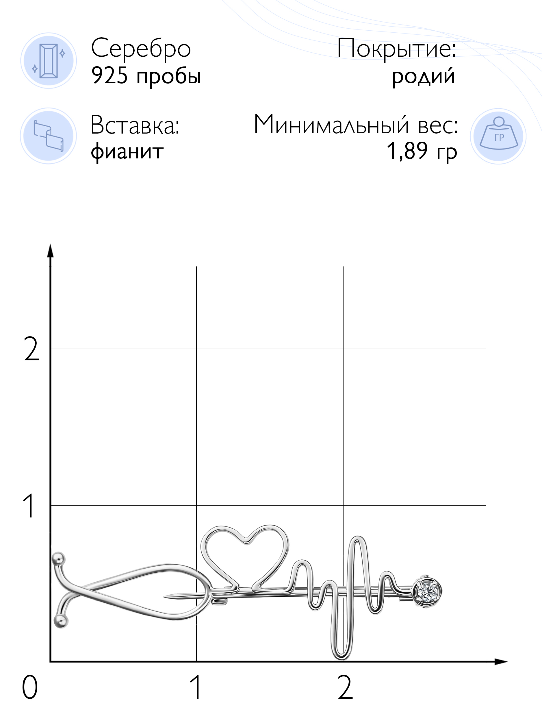 Pro-Medicus Брошь Пульс с сердцем серебро 925 пробы