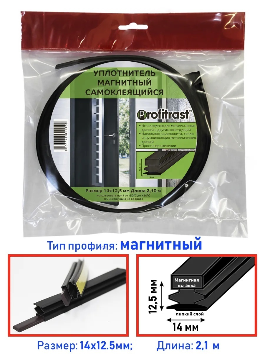Уплотнитель для дверей магнитный 14х12.5 мм 2.1 м, цвет чёрный