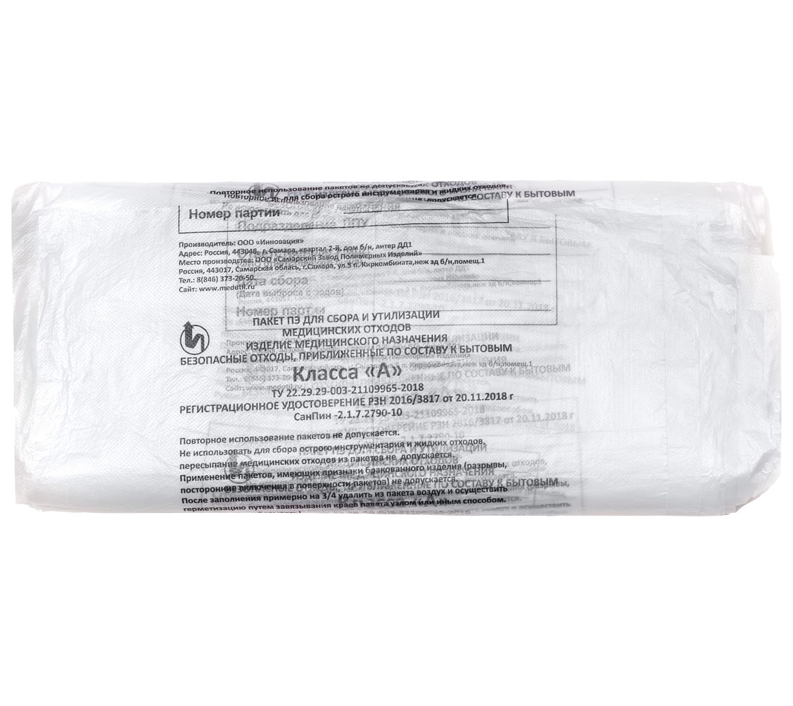 Пакеты для утил. мед. отходов "А" белый, 700х800 - 60л / Респект , 500 шт