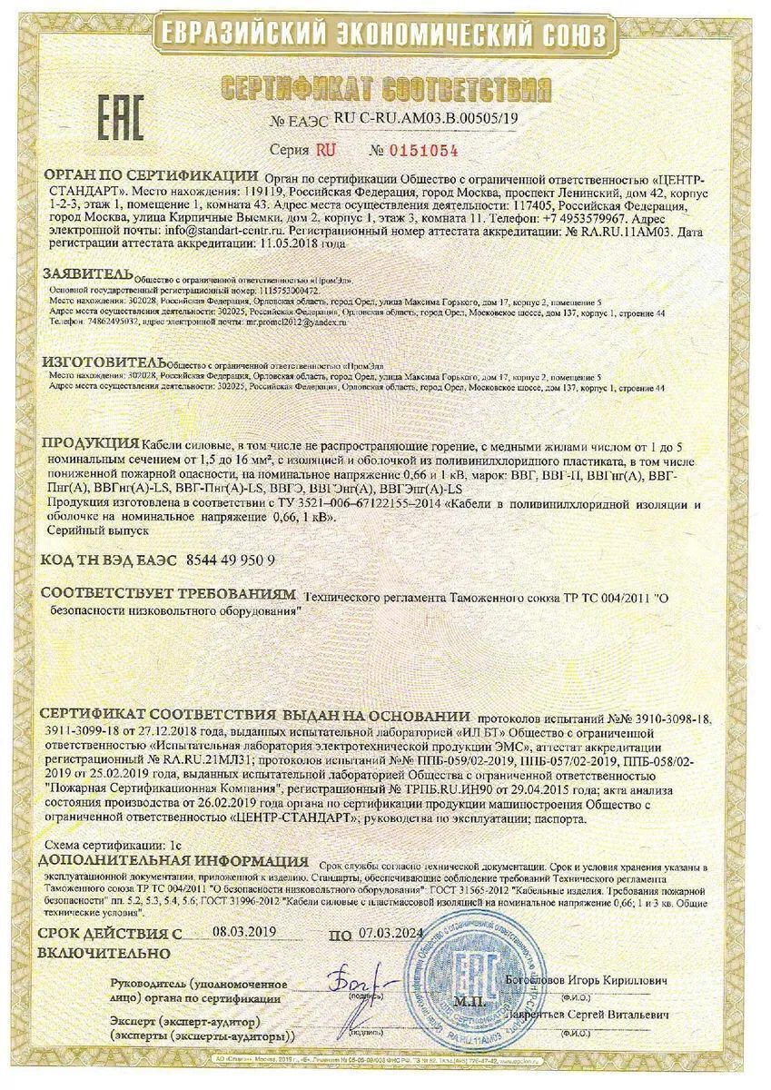 Кабель ВВГнг(А)-FRLS 3* 1,5ок (N,PE) -1кВ ПромЭл