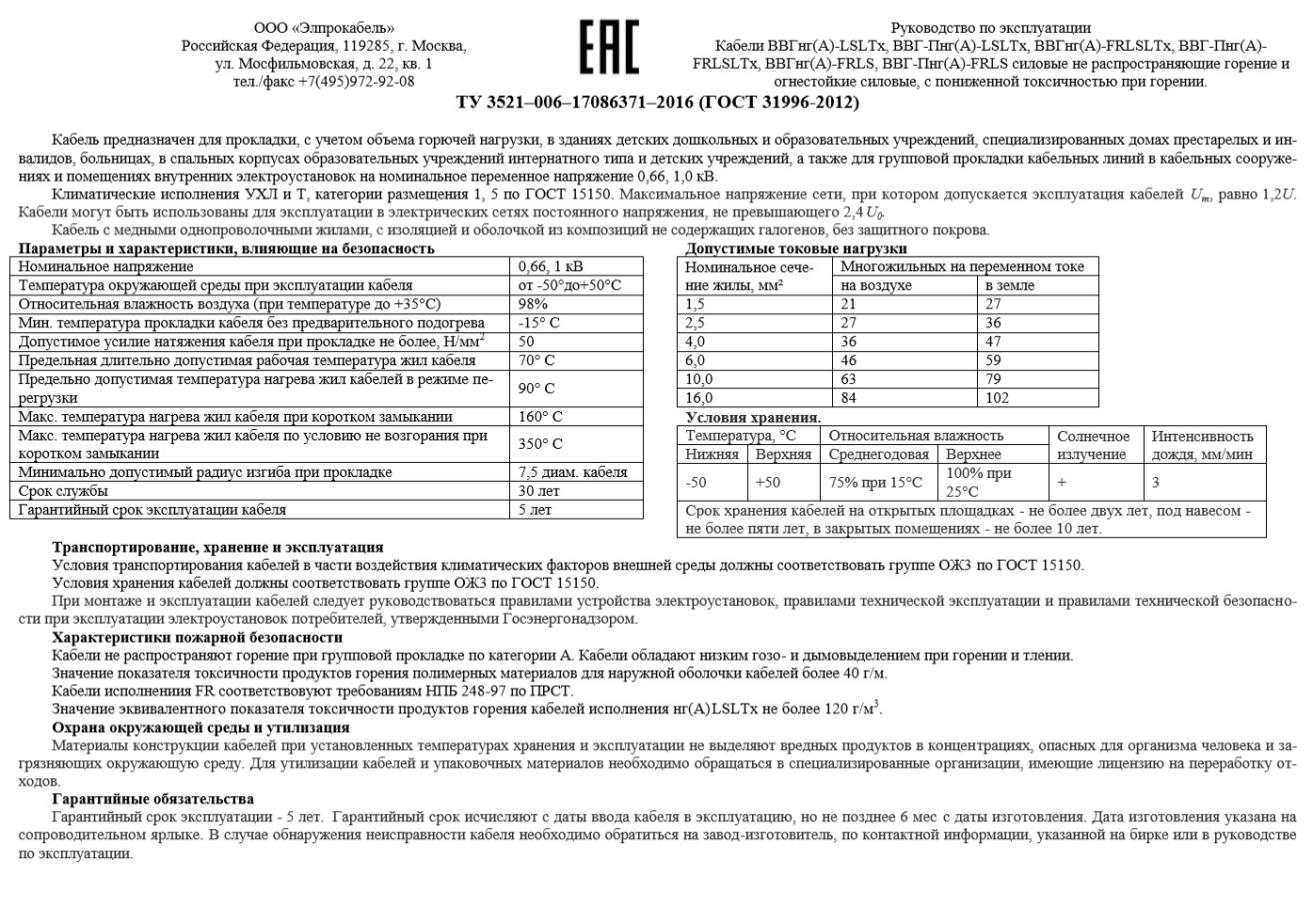 Кабель ВВГнг(А)-LS 5х6ок(N,PE)-0,66 ПромЭл