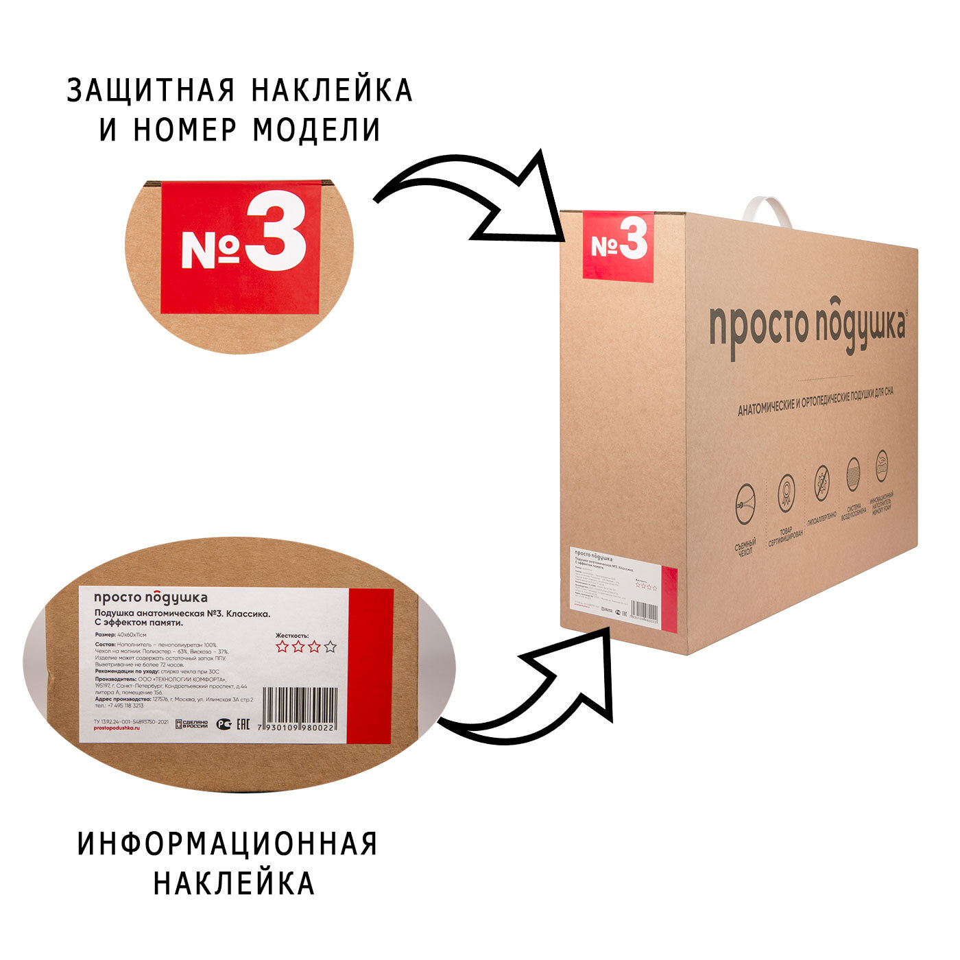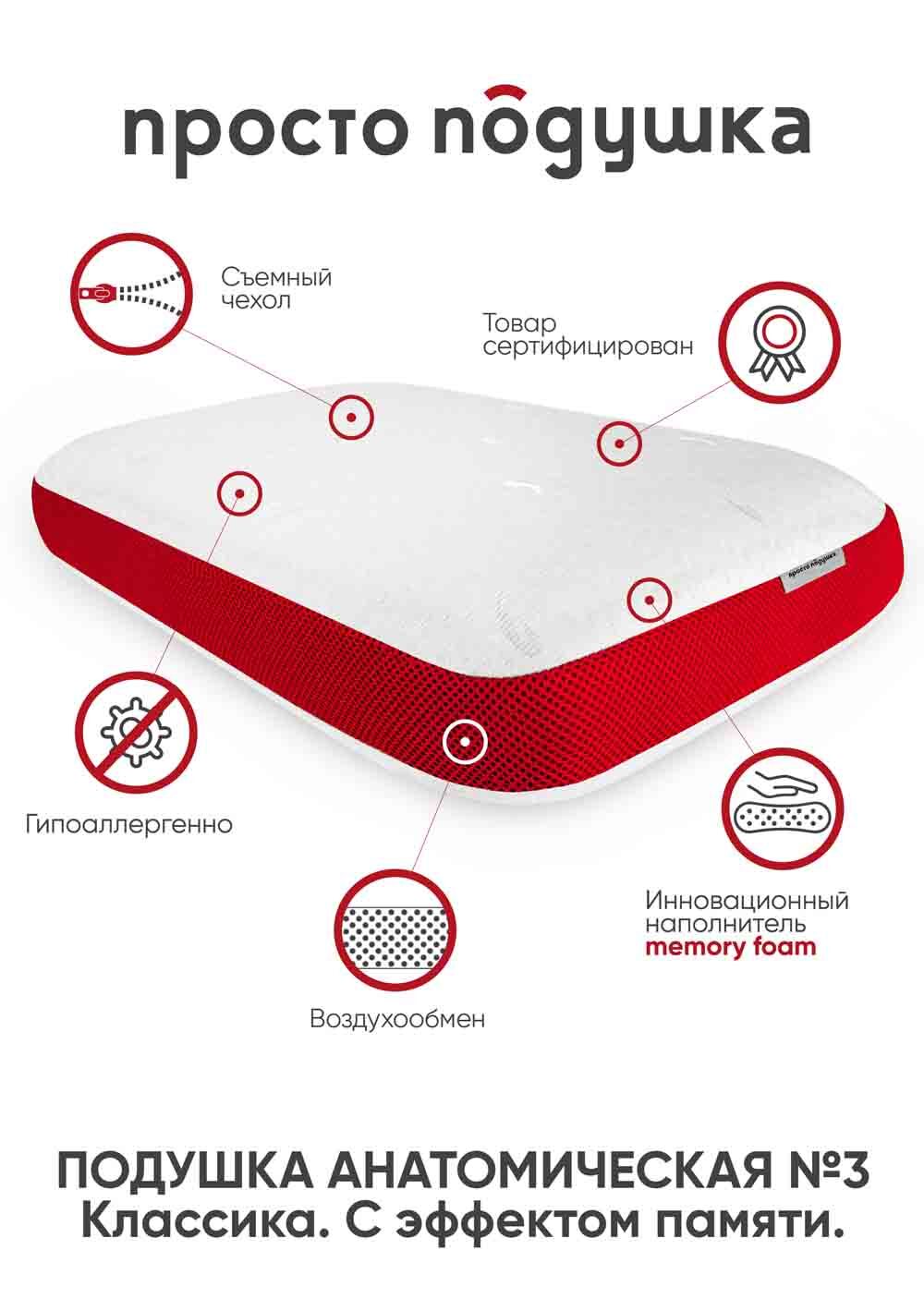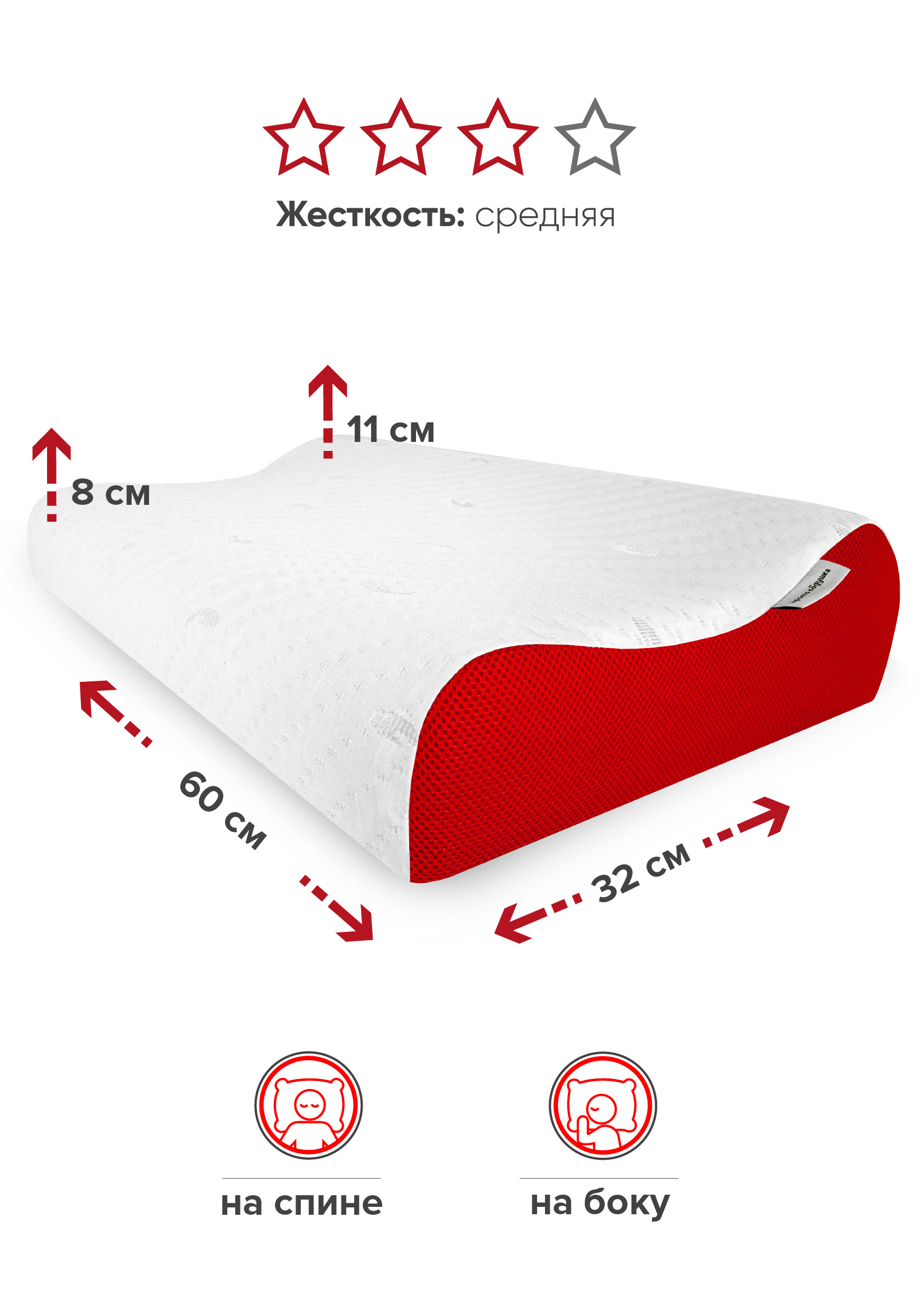 Анатомическая подушка, Ортопедическая подушка 60x40см, ПРОСТО ПОДУШКА №3, высота 11 см