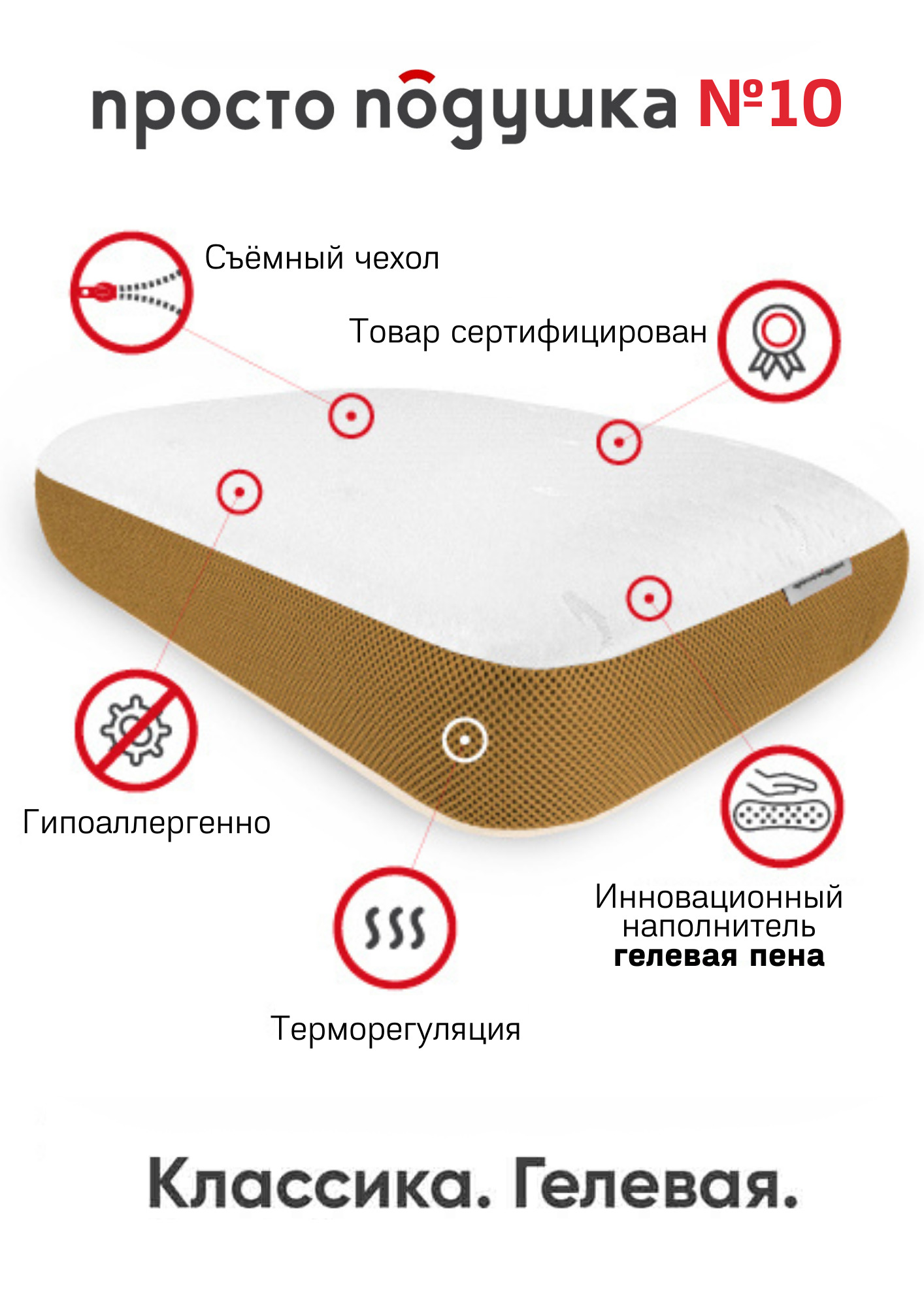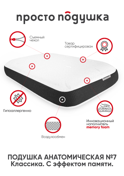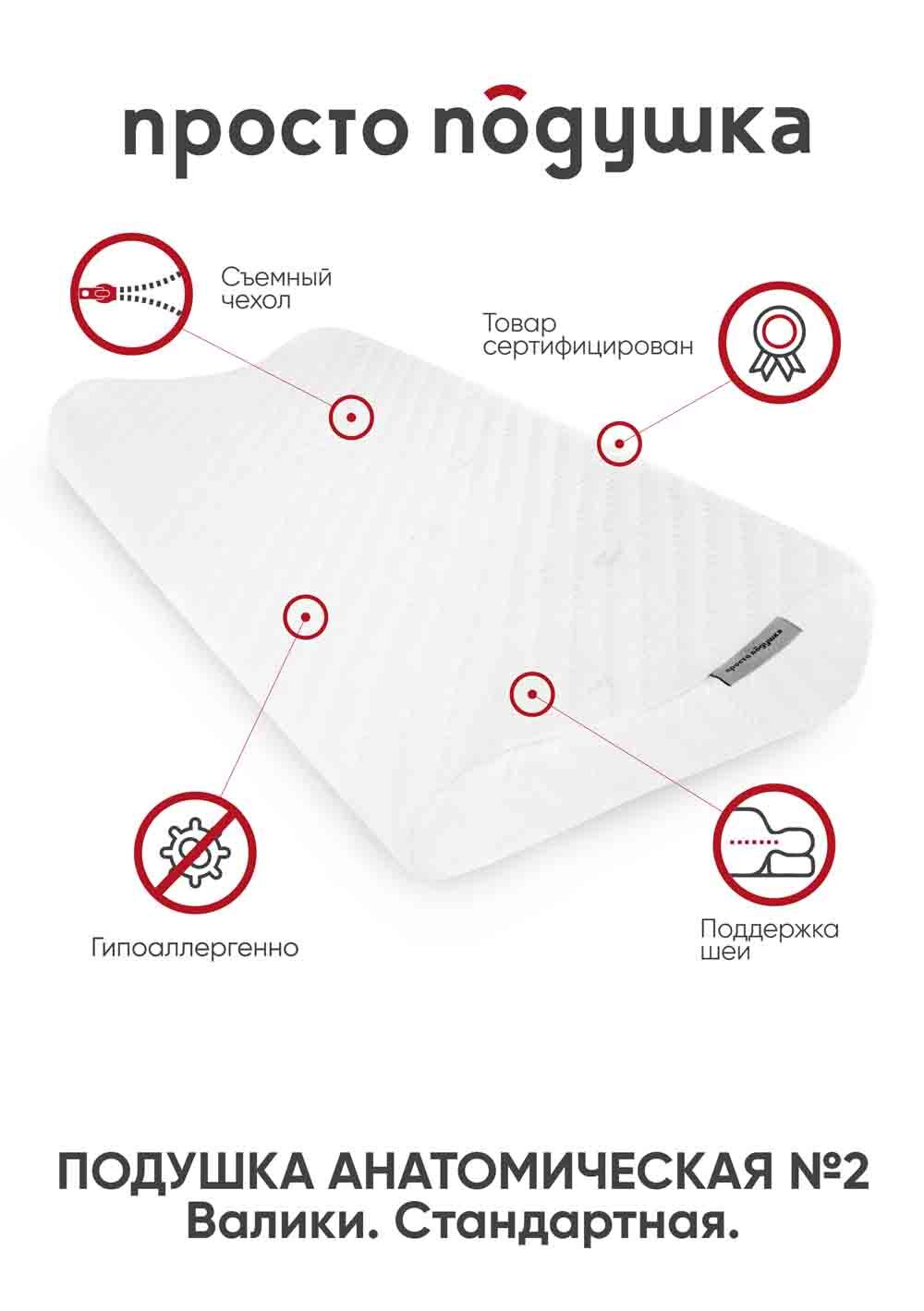 Анатомическая подушка, Ортопедическая подушка 50x70см, ПРОСТО ПОДУШКА №2, высота 15 см