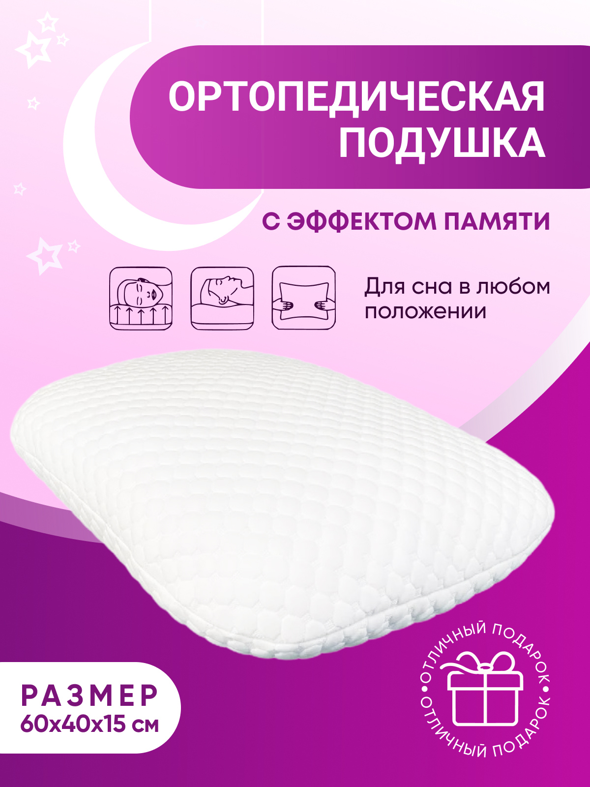 Анатомическая подушка, Ортопедическая подушка 60x40см, ПРОСТО ПОДУШКА №1, высота 15 см