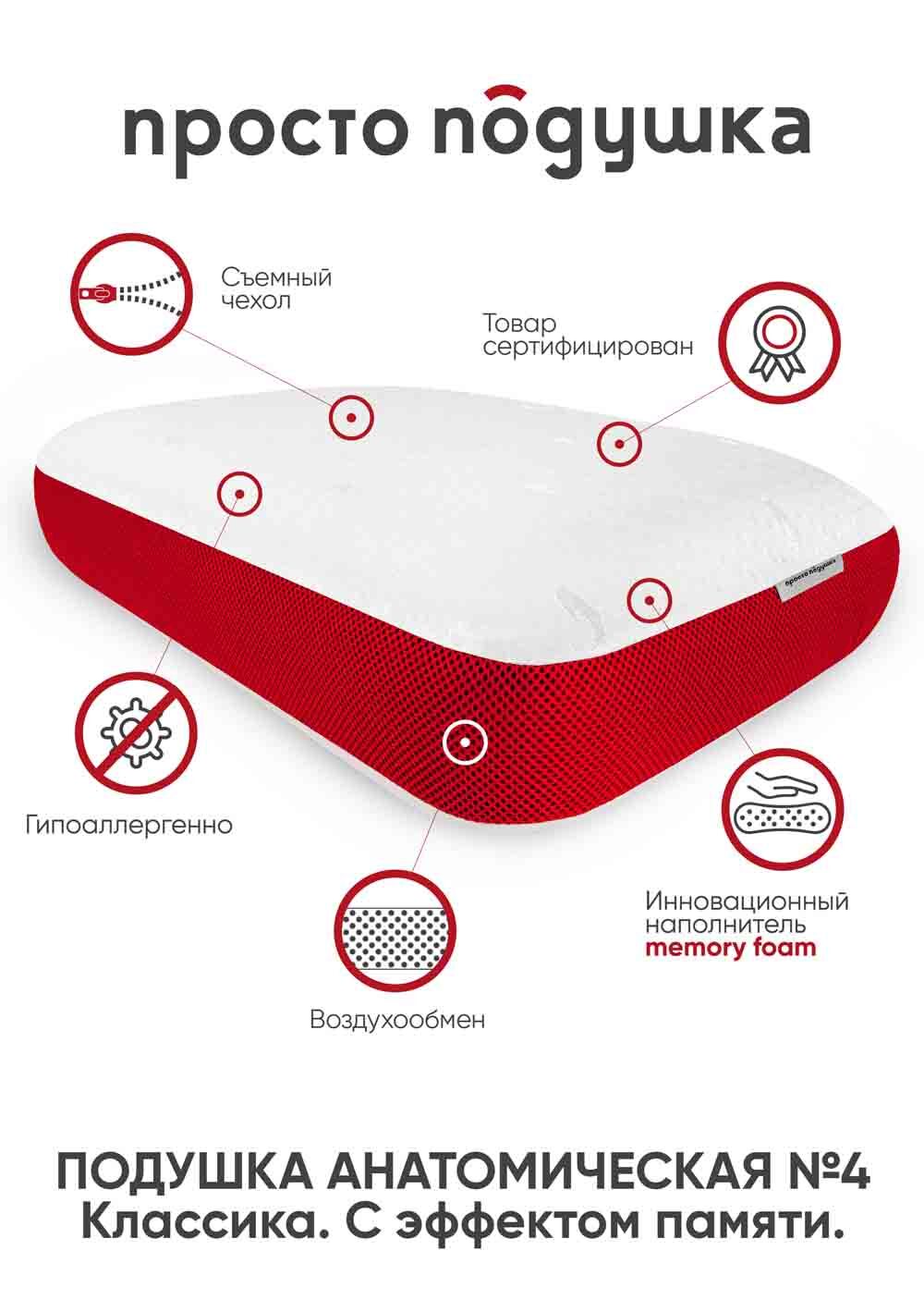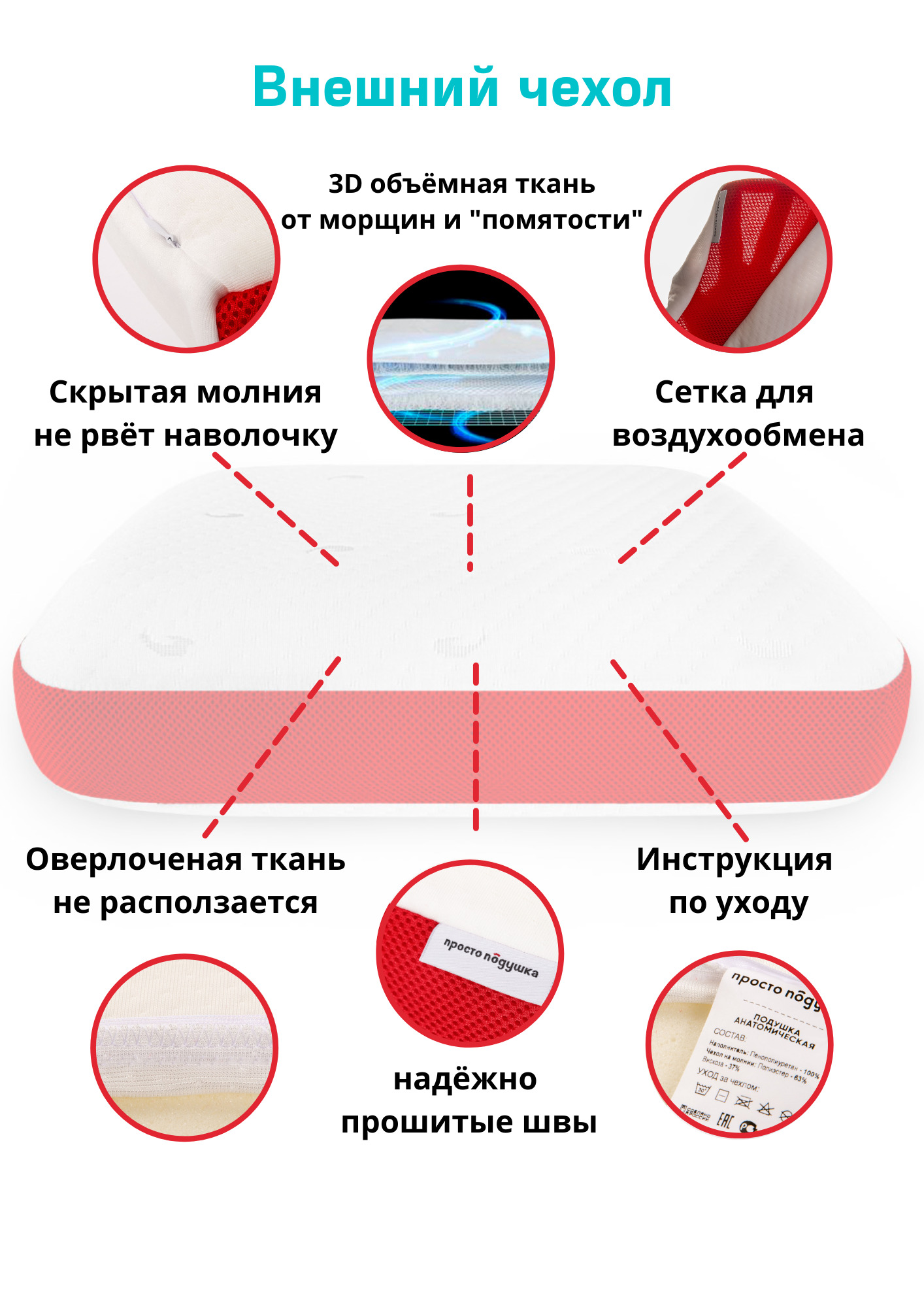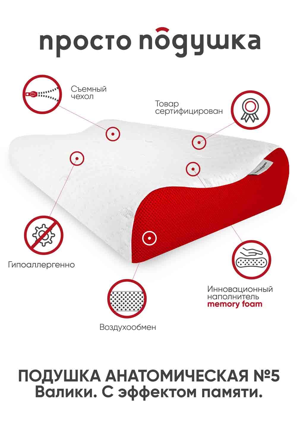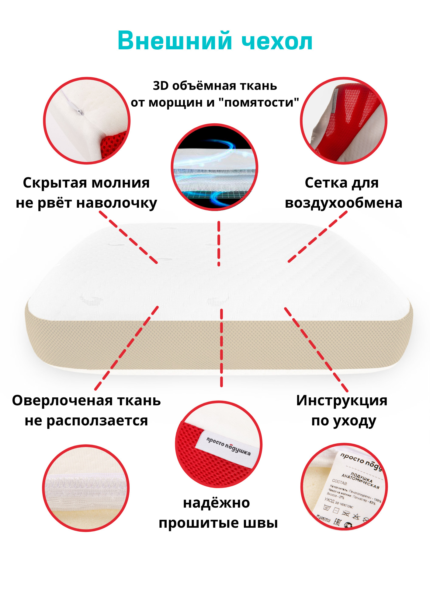 Анатомическая подушка, Ортопедическая подушка 32x60см, ПРОСТО ПОДУШКА №5,