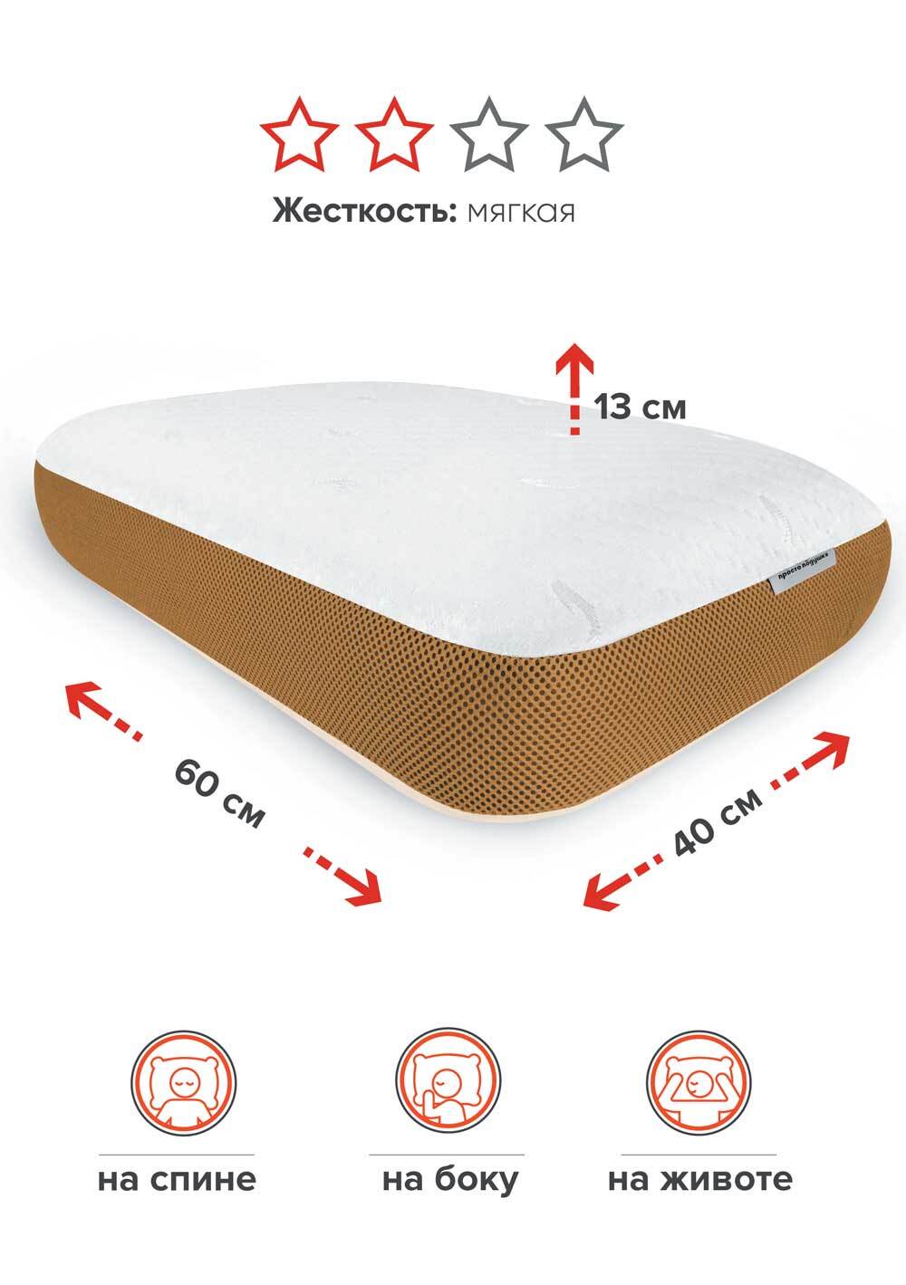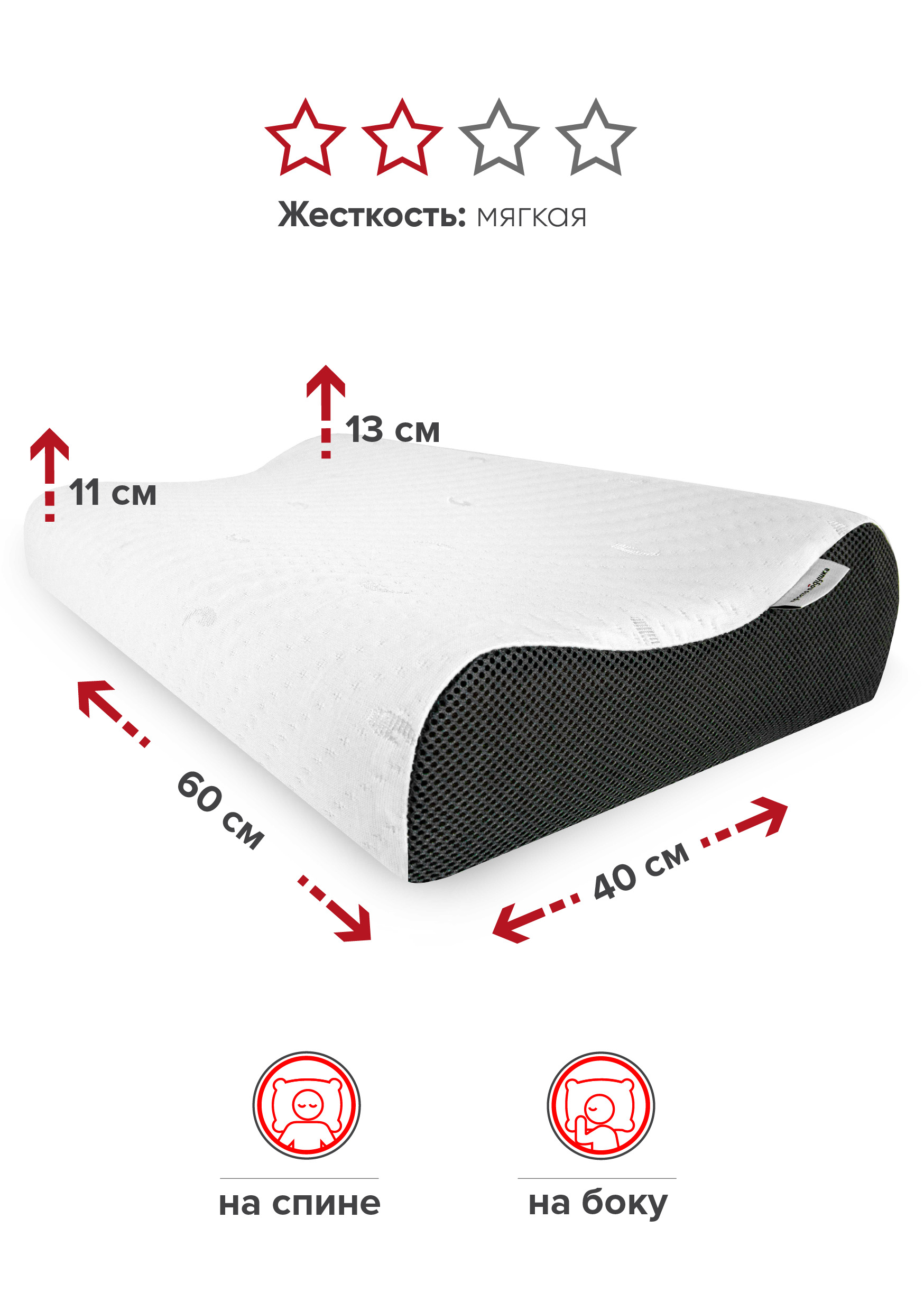 Анатомическая подушка, Ортопедическая подушка 60x40см, ПРОСТО ПОДУШКА №6, высота 13 см