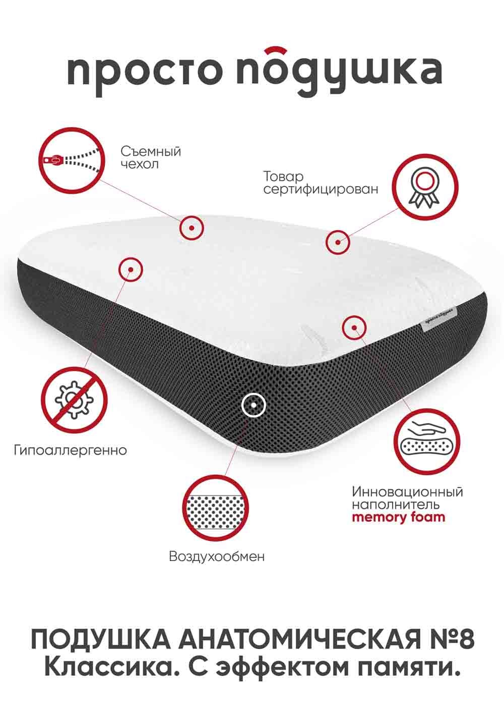 Анатомическая подушка, Ортопедическая подушка 60x40см, ПРОСТО ПОДУШКА №8, высота 15 см