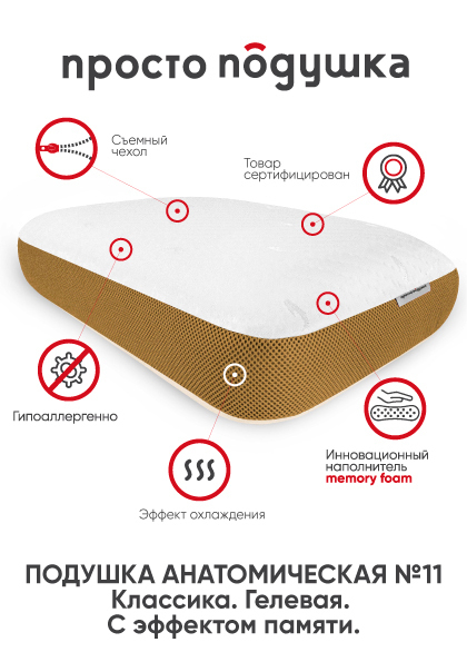 Анатомическая подушка, Ортопедическая подушка 70x50см, ПРОСТО ПОДУШКА №11, высота 13 см