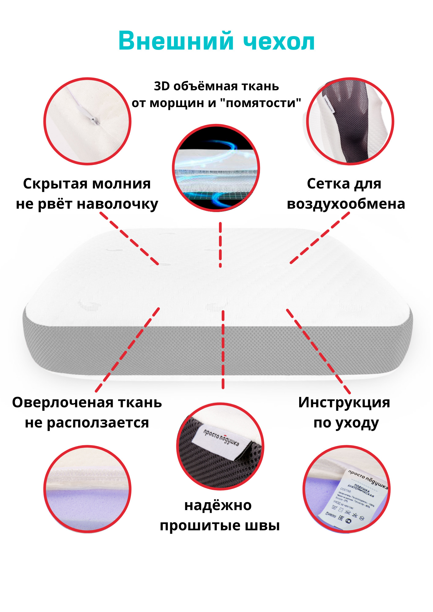 Ортопедическая подушка, Анатомическая подушка 60x40см, ПРОСТО ПОДУШКА №1,