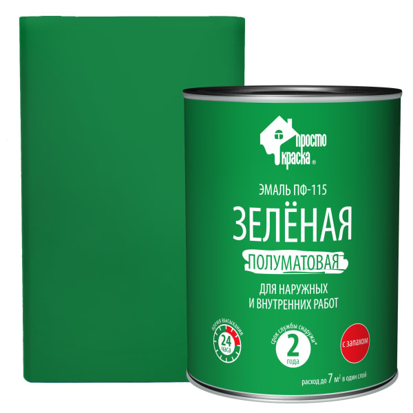 Эмаль ПФ-115 Простокраска полуматовая цвет зелёный 0.8 кг