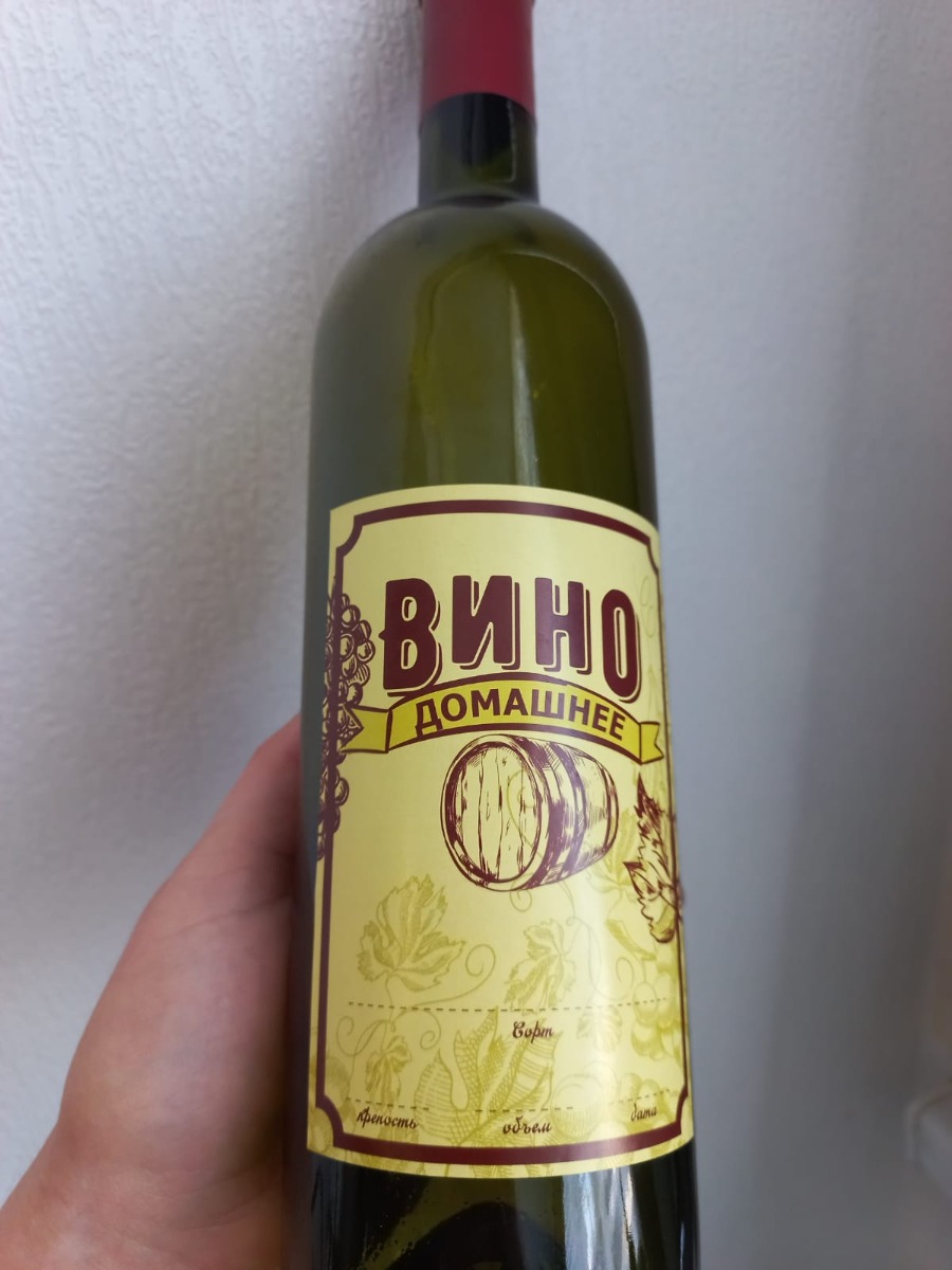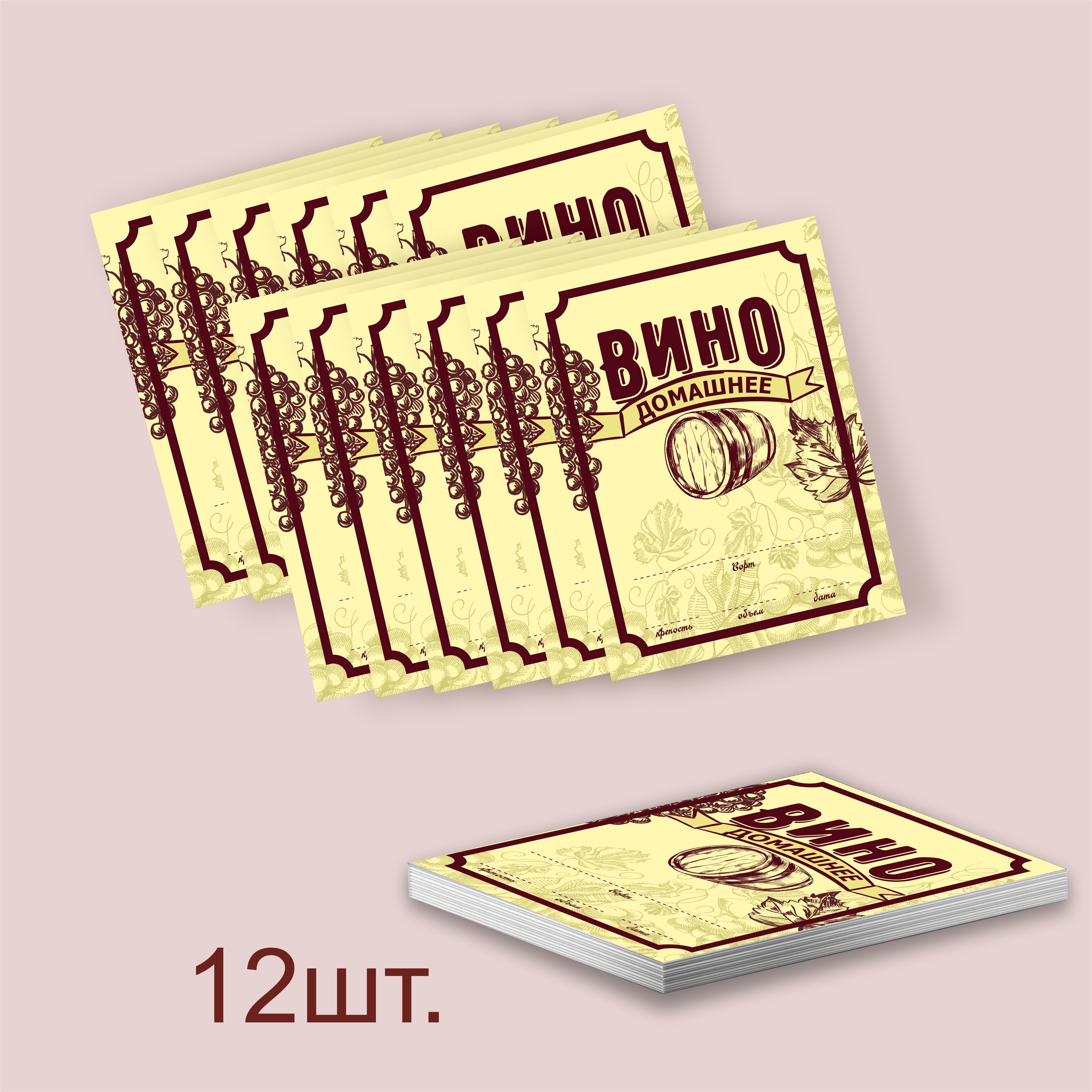 Наклейки на бутылку "Вино домашнее, 8 х 11см, набор 12шт. (для вина)