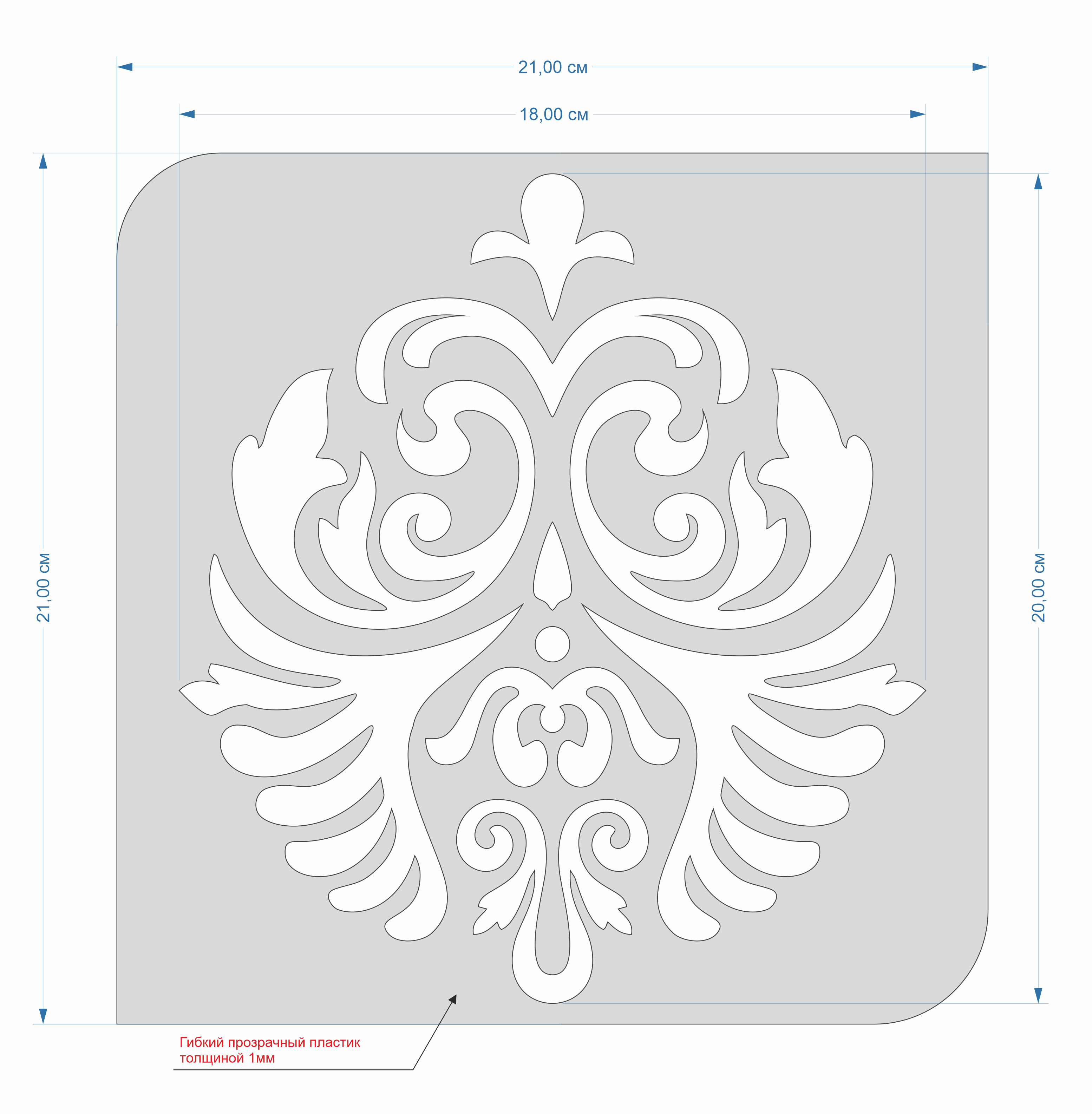 Трафарет многоразовый "Дамасский узор" (размер 20х18см), гибкий для штукатурки, толщина 1мм