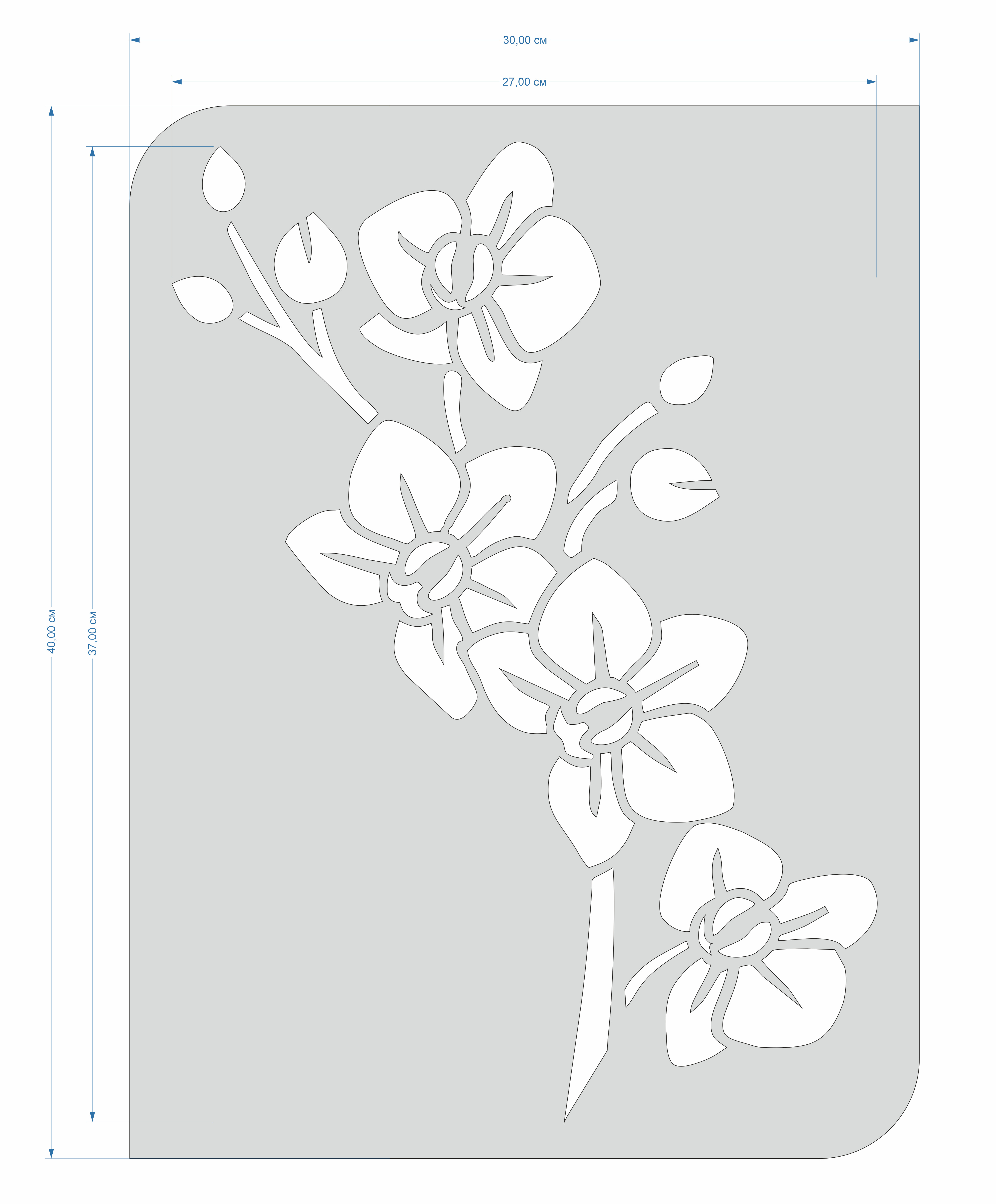 Трафарет многоразовый "Орхидея" (размер 27х37см), гибкий для штукатурки, толщина 1мм
