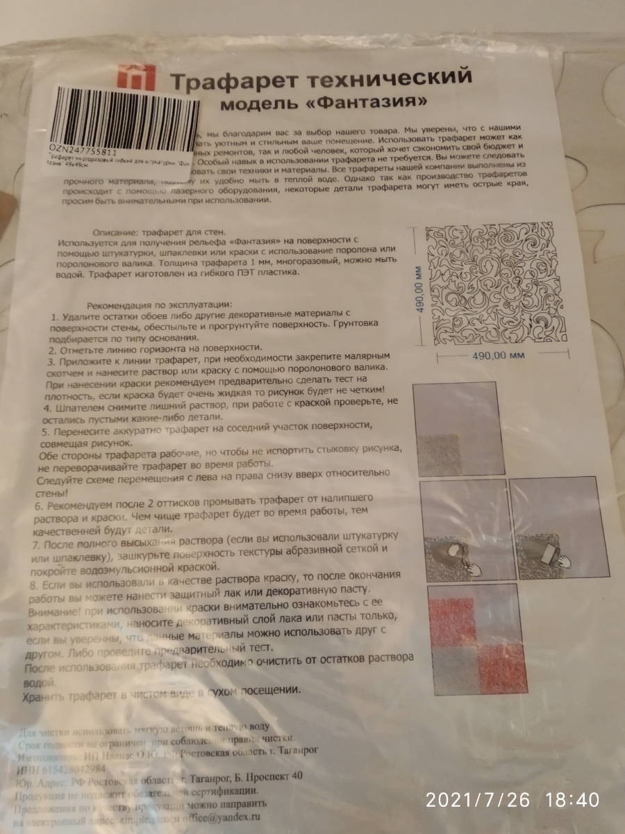 Трафарет многоразовый, гибкий для штукатурки "Фантазия" 49х49см, толщина 1мм