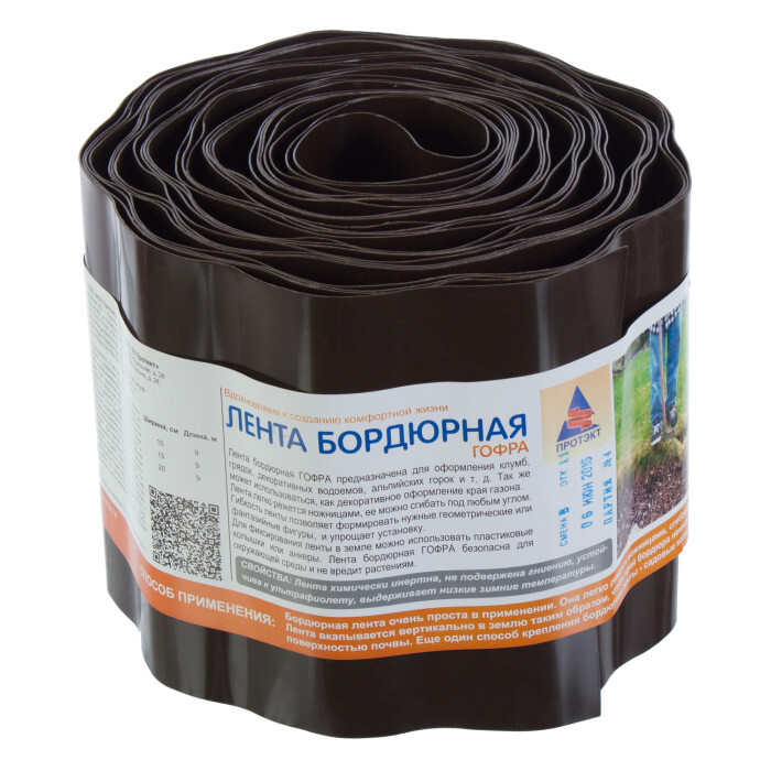 Лента бордюрная декоративная Гофра высота 20 см цвет коричневый
