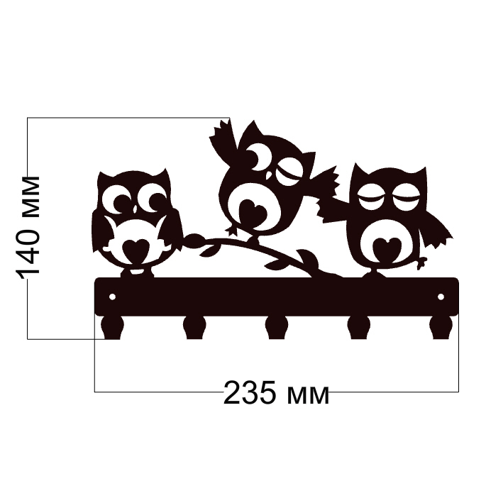 Вешалка настенная, Вешалка в прихожую Влюбленные совята, 235х15х140 см