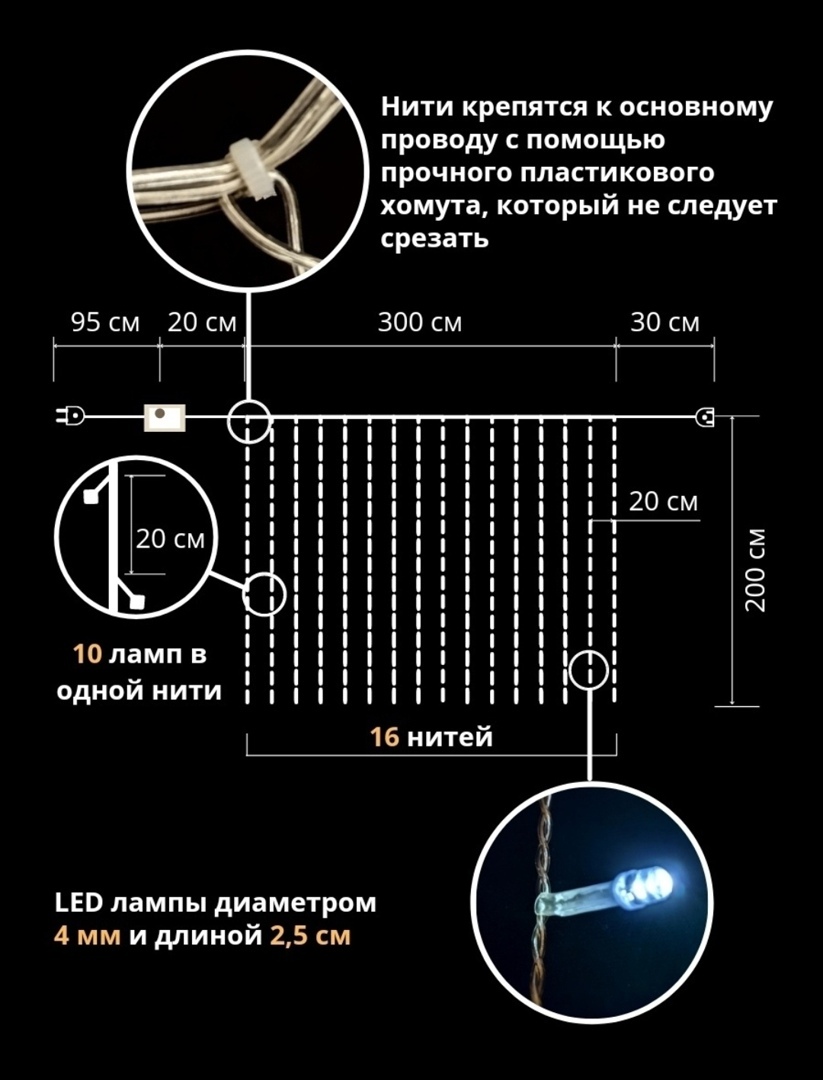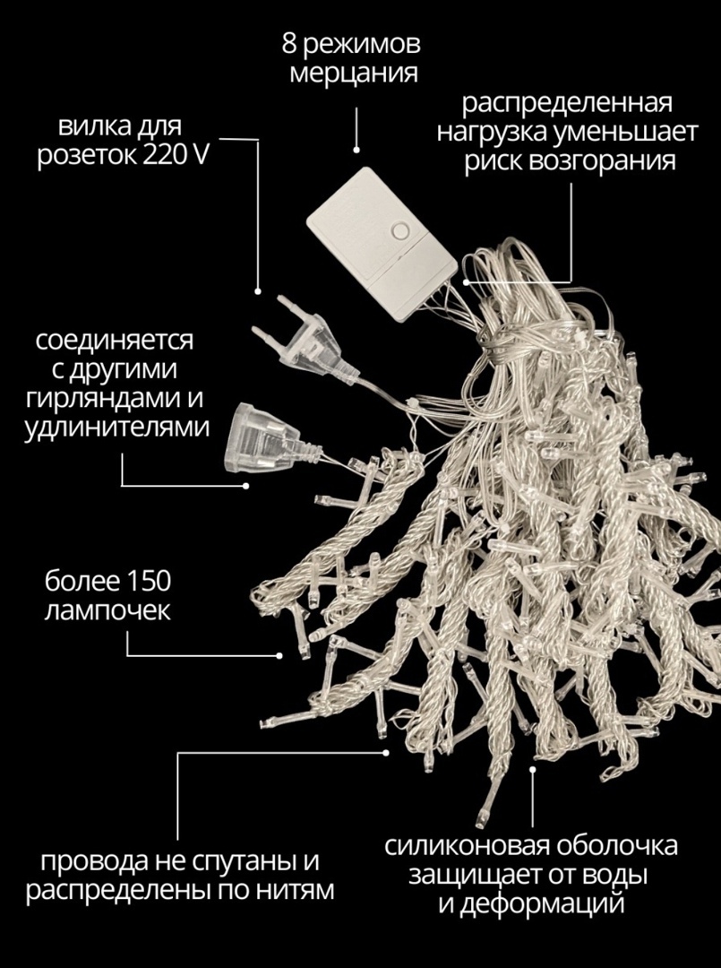 Электрогирлянда интерьерная Штора PUDRA HOME Светодиодная, 3 м, питание От сети 220В