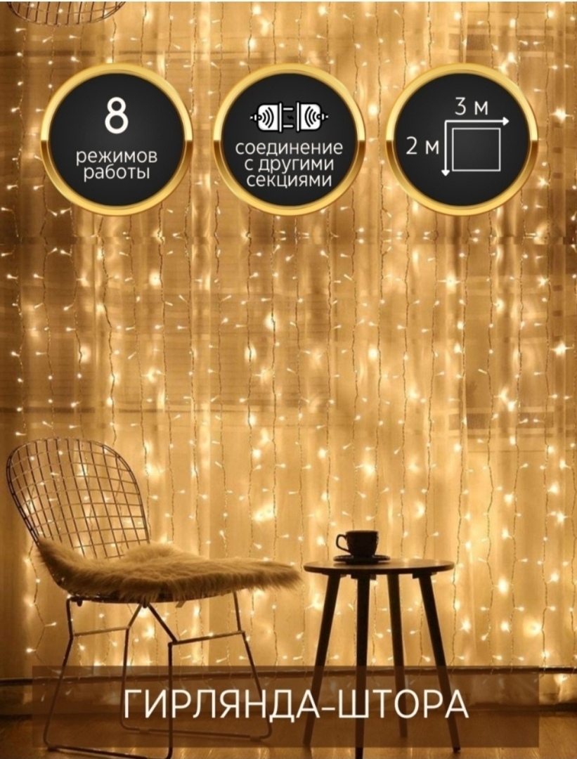 Электрогирлянда интерьерная Штора PUDRA HOME Светодиодная, 3 м