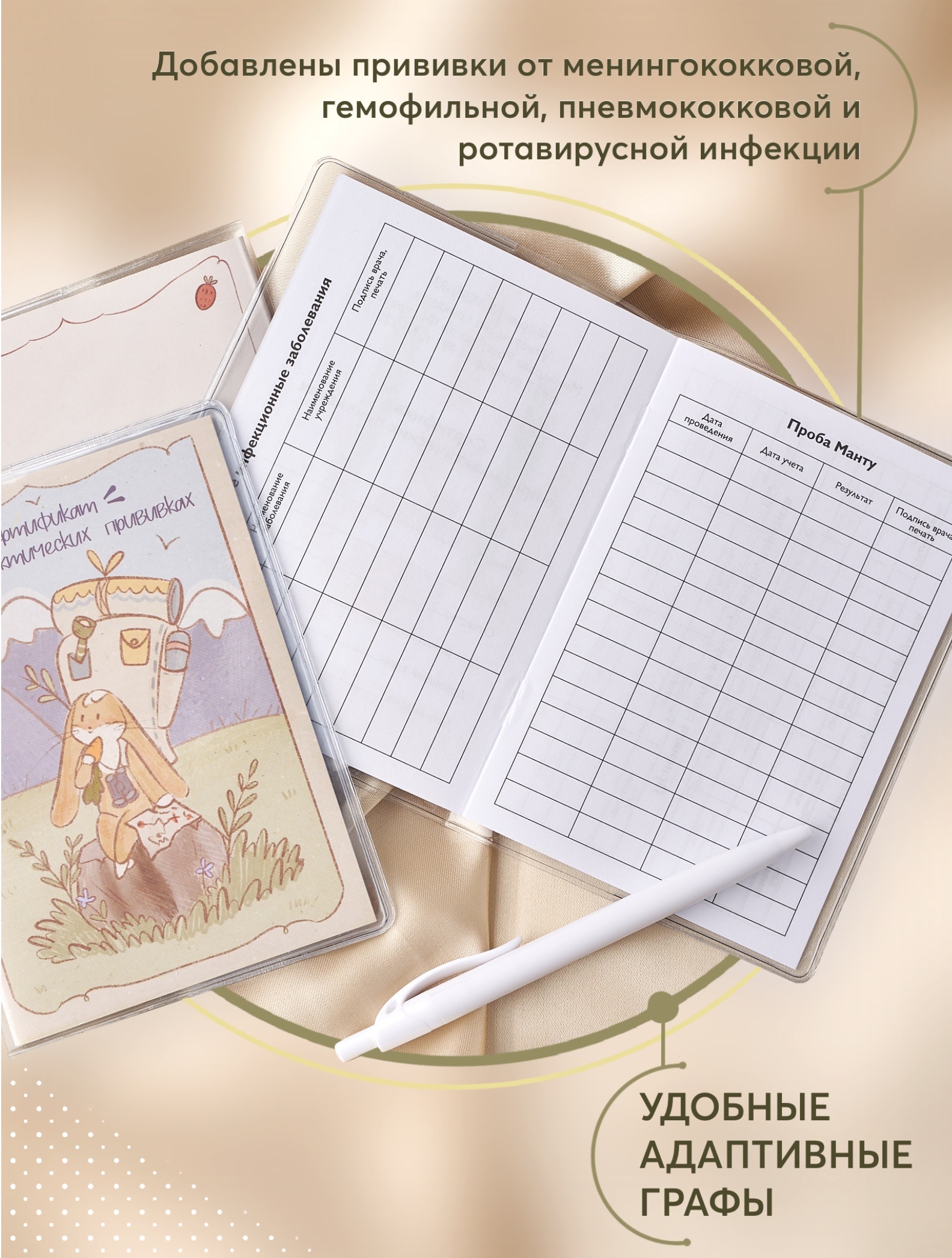 Сертификат прививок с обложкой / сертификат о профилактических прививках / Медицинская карта / для ребенка