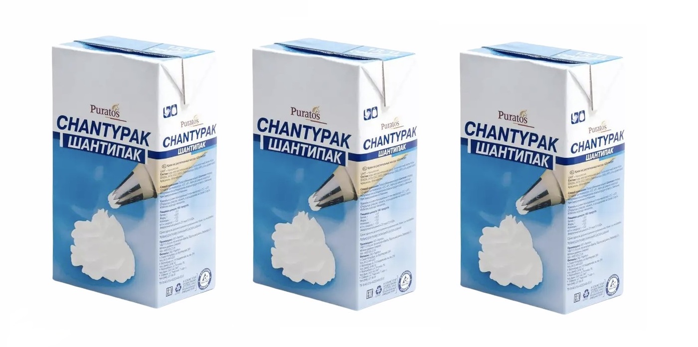Растительные сливки Шантипак (Puratos) для взбивания крема на торт кондитерские, 26%, 1л, 3 штуки