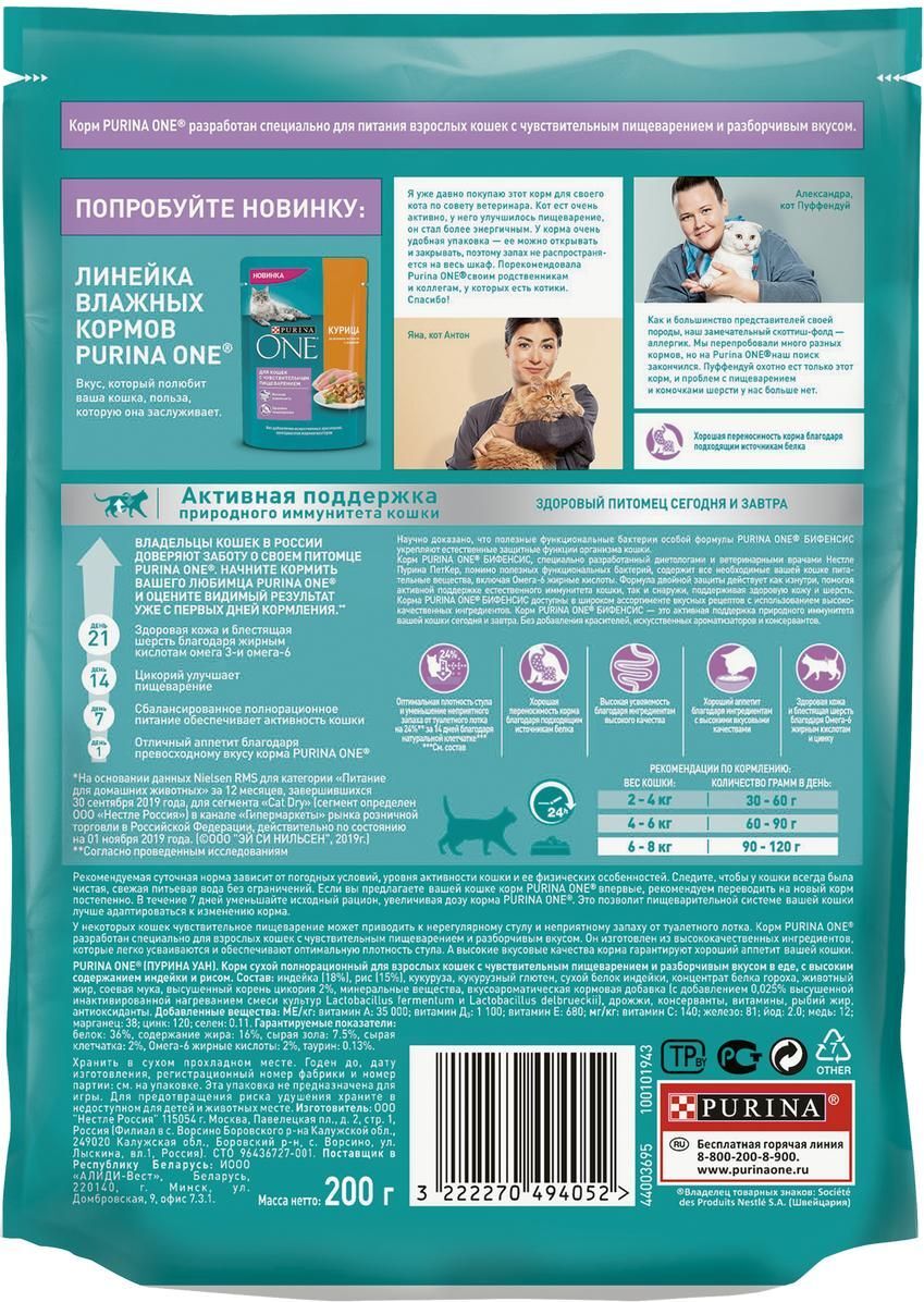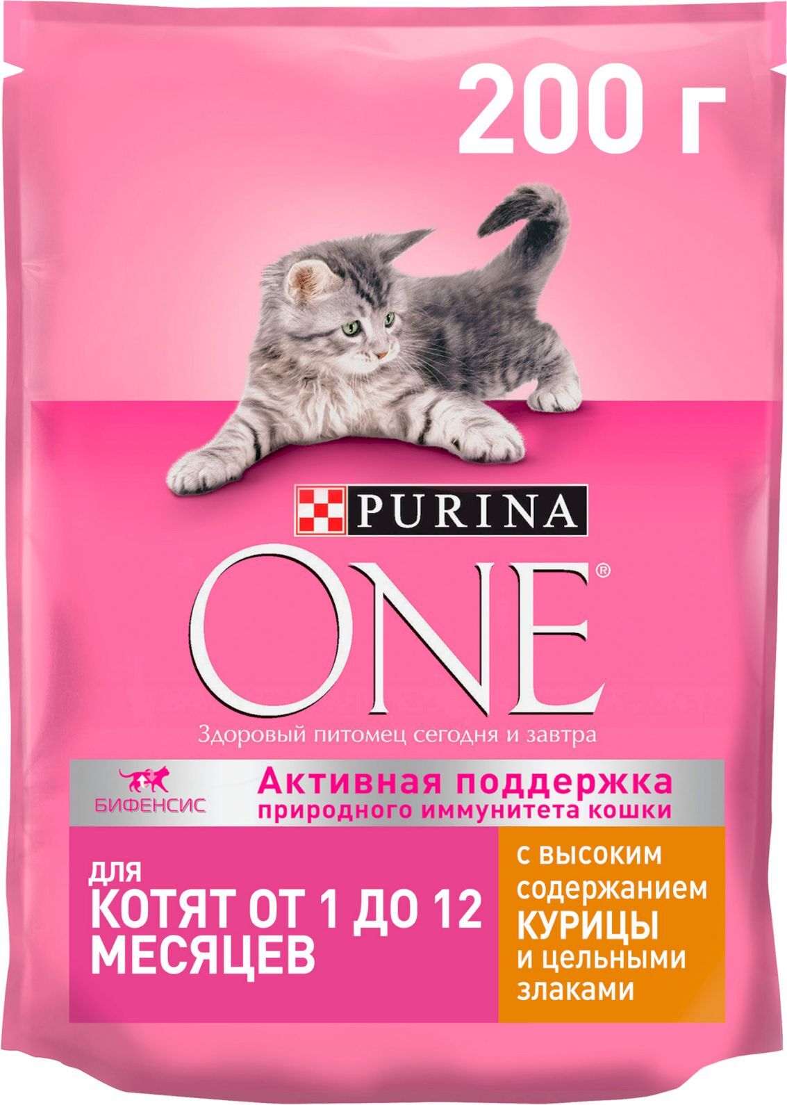 Сухой корм для котят Purina One, с высоким содержанием курицы и цельными злаками, 200 г