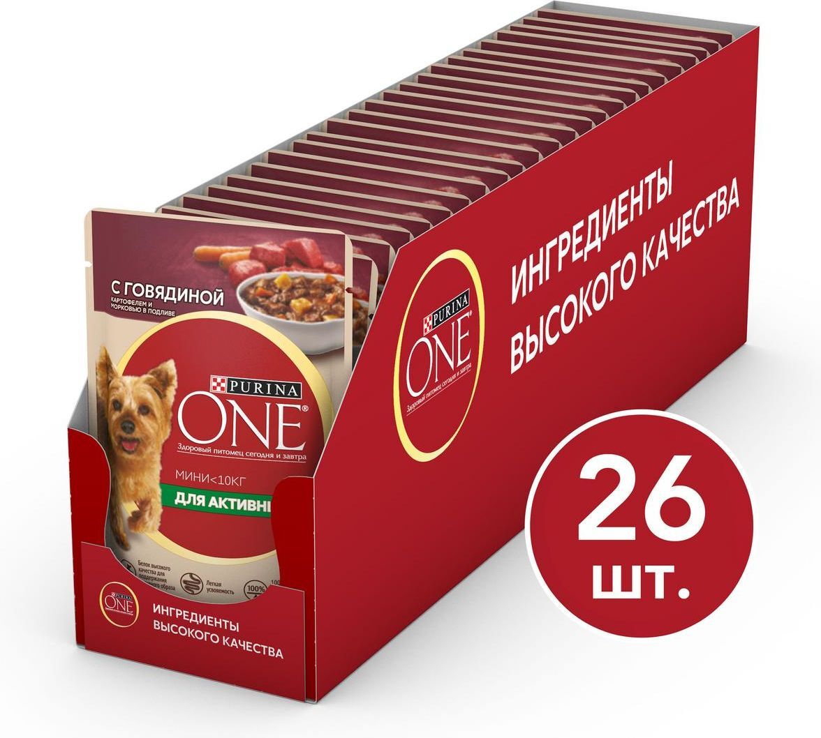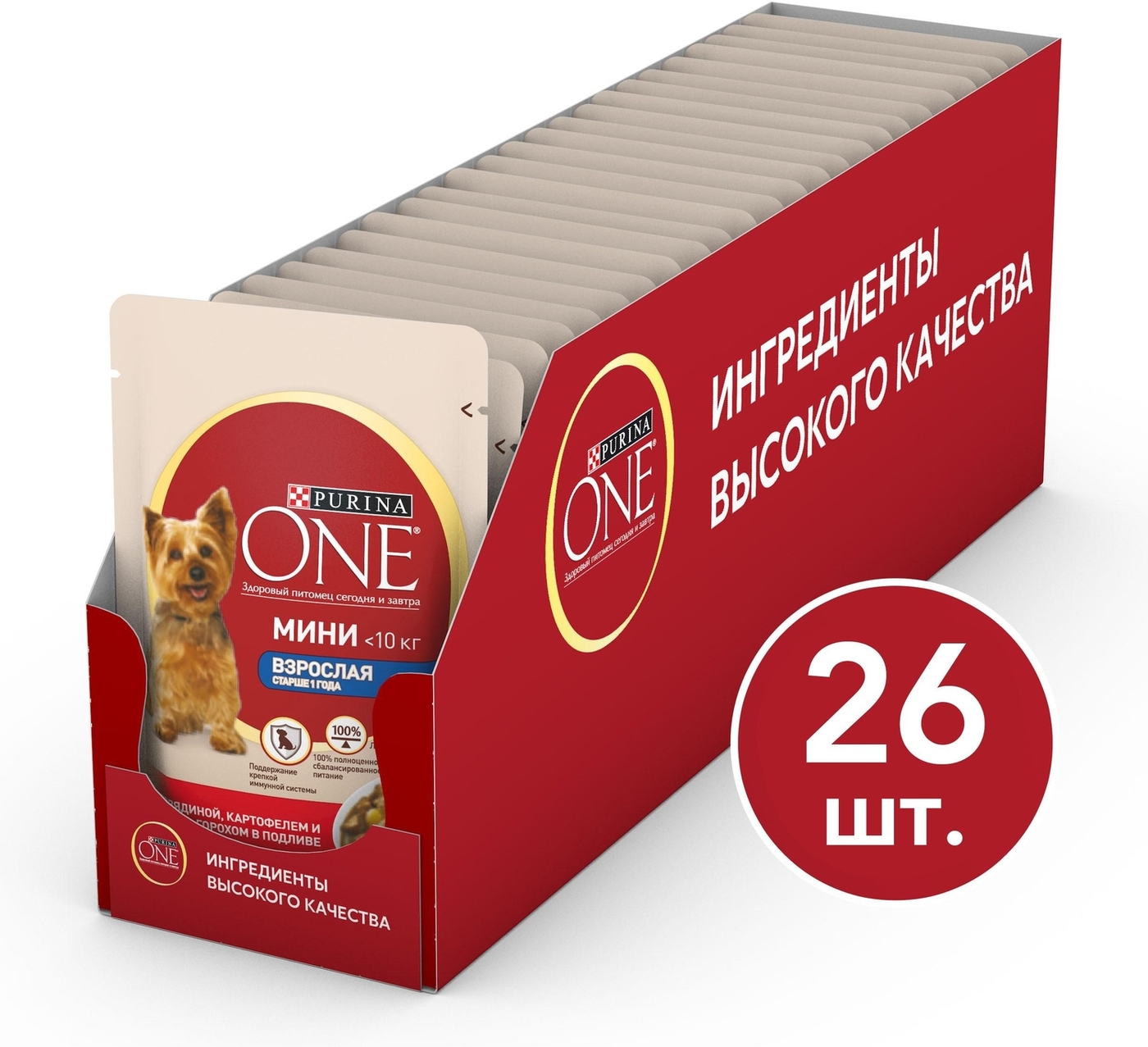 Влажный корм Purina ONE для взрослых кошек, с говядиной и морковью, 26 шт х 75 г
