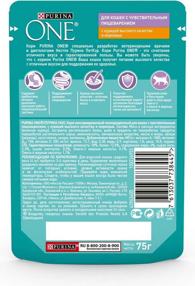 Сухой корм для кошек Purina One стерилизованных, с высоким содержанием говядины, 680 г