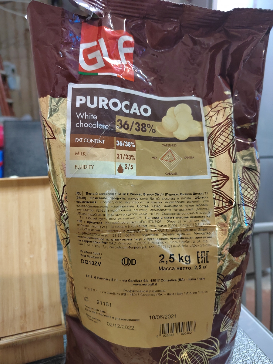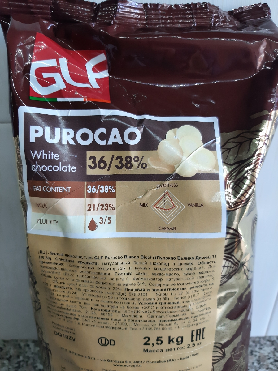 Белый шоколад Purocao GLF 31% (36/38) пакет 200 гр