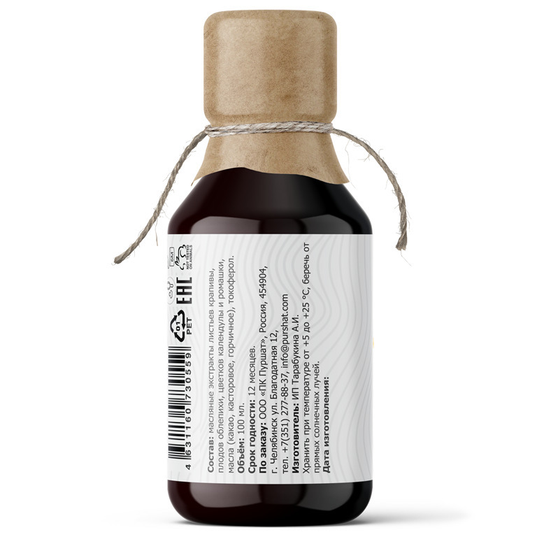 Крем-спрей для волос 100% натуральный несмываемый 15 в 1 Пуршат (Purshat) 200 мл