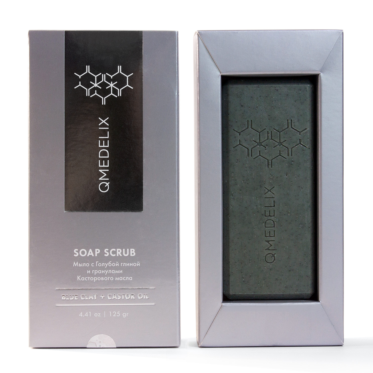 QMEDELIX 503 Мыло туалетное Скраб с Голубой глиной и гранулами Касторового масла для сияния кожи 125гр.