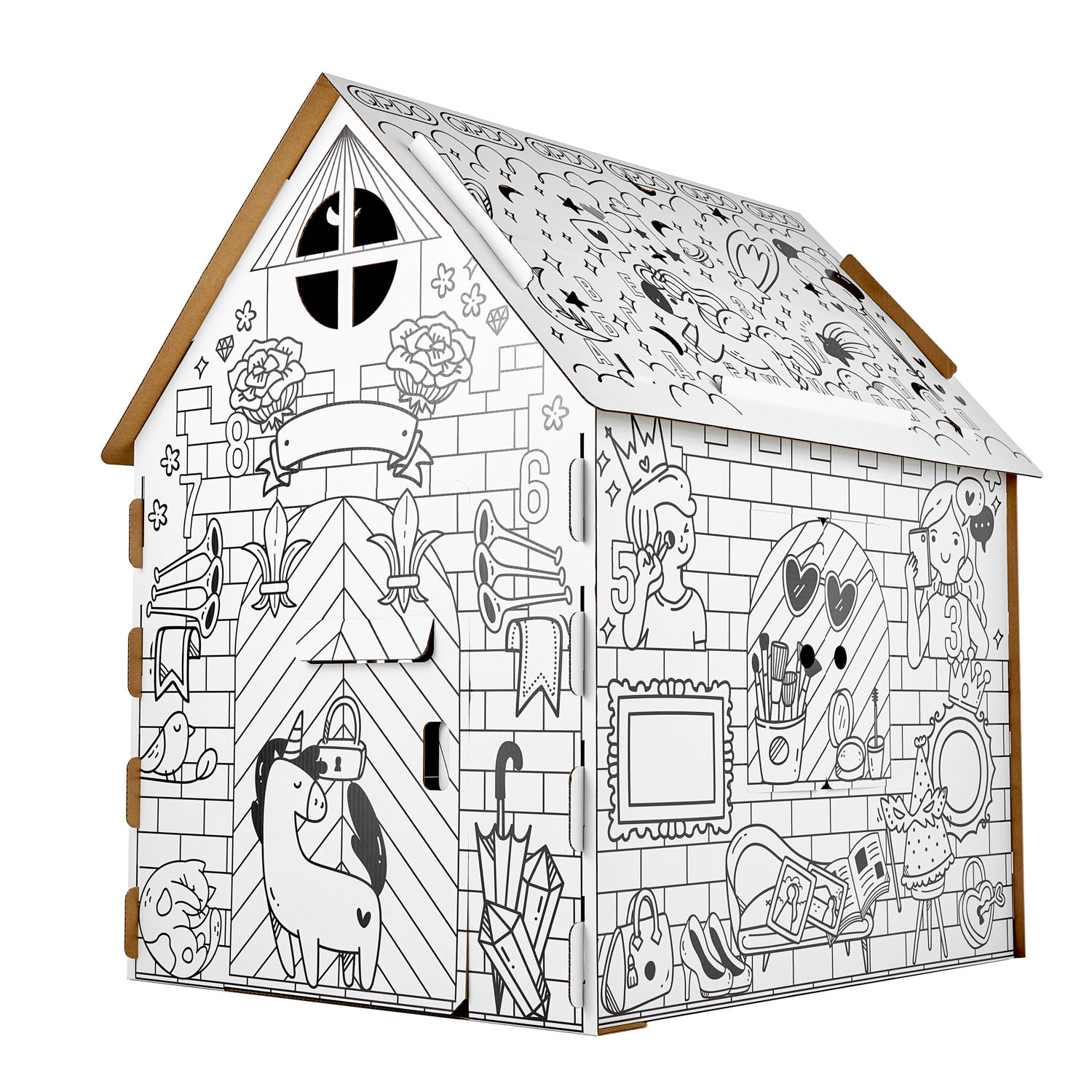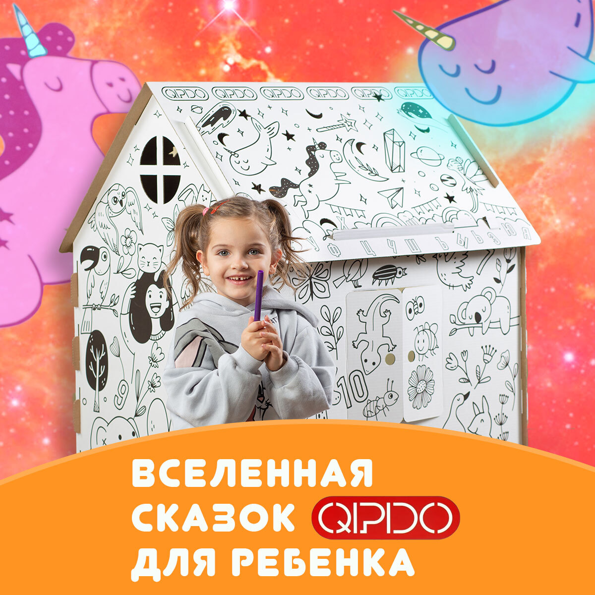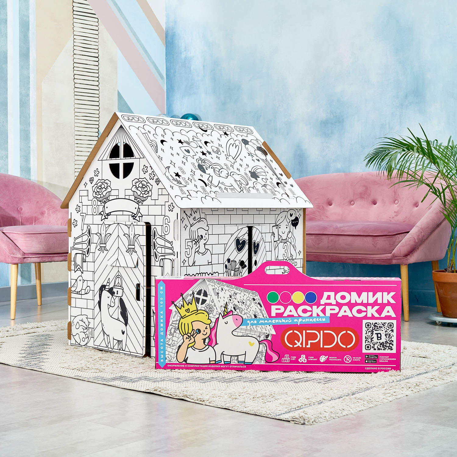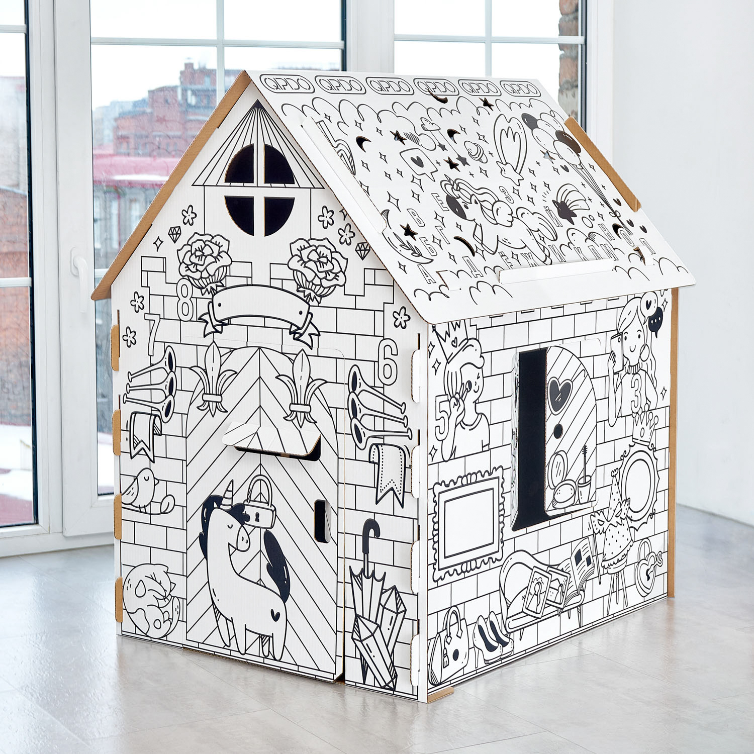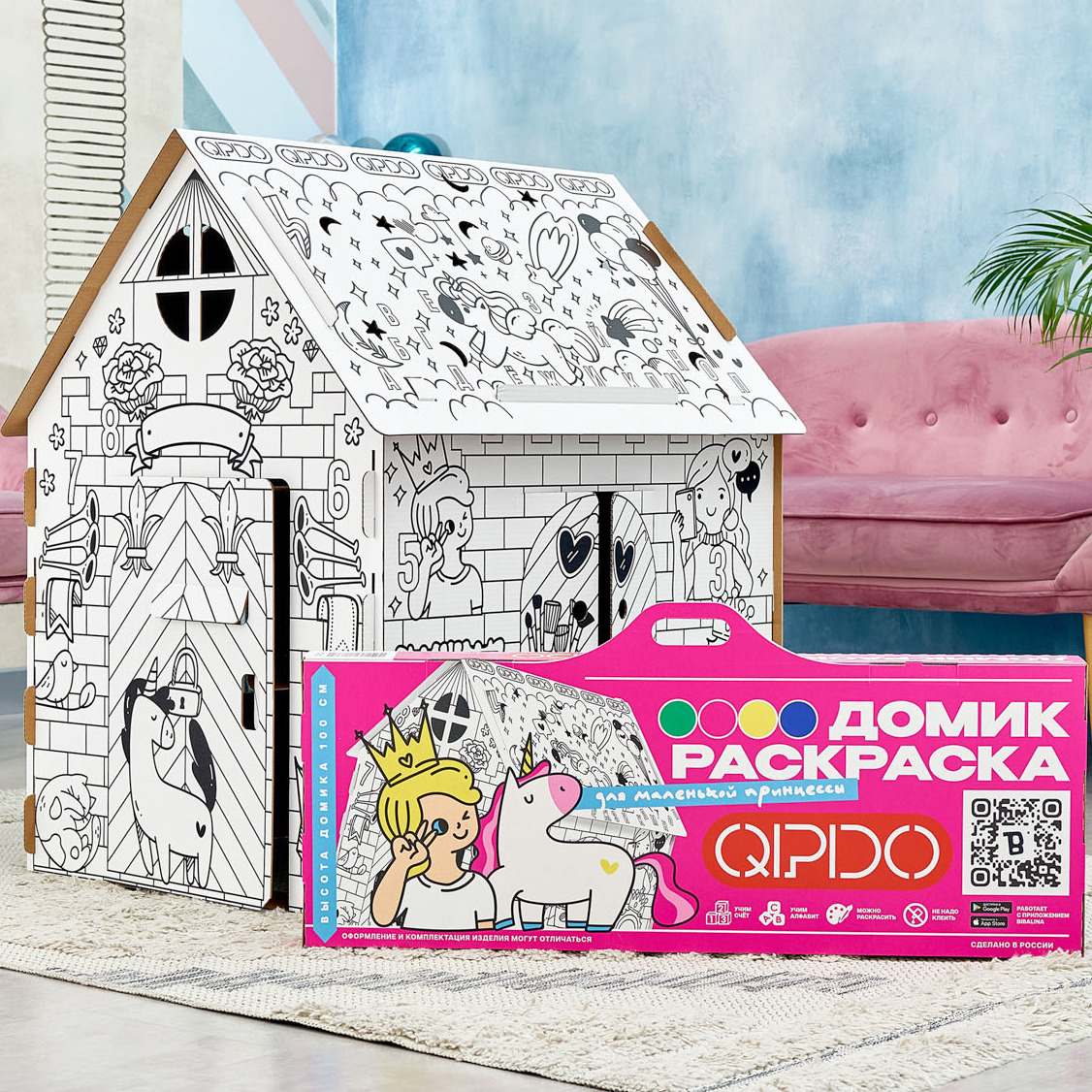 Развивающий домик - раскраска "QPDO" Принцесса и единороги, картонный домик , игровой, с алфавитом и цифрами