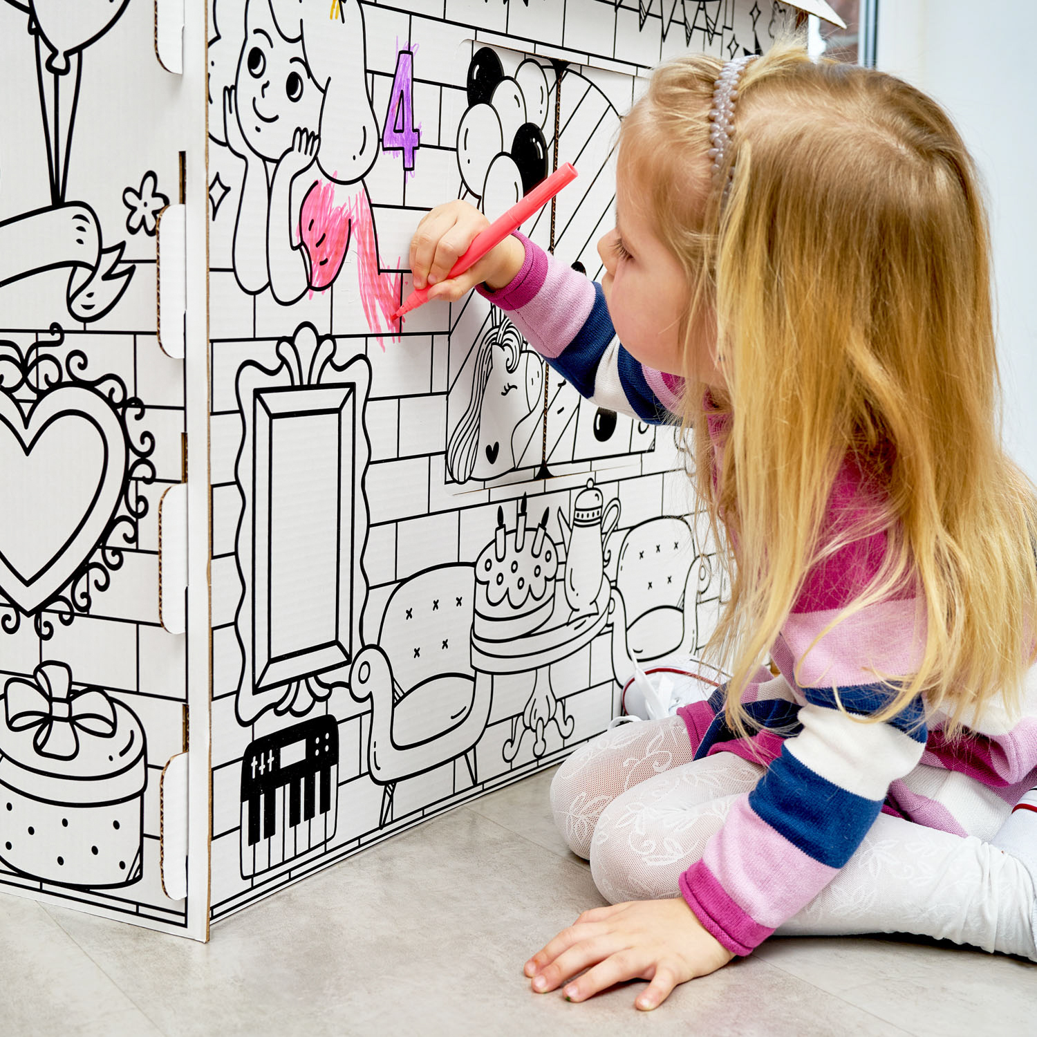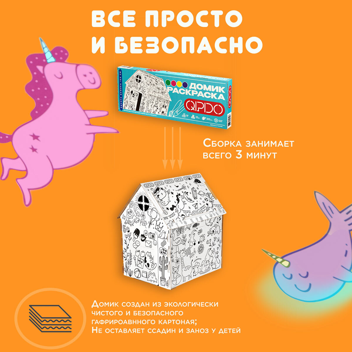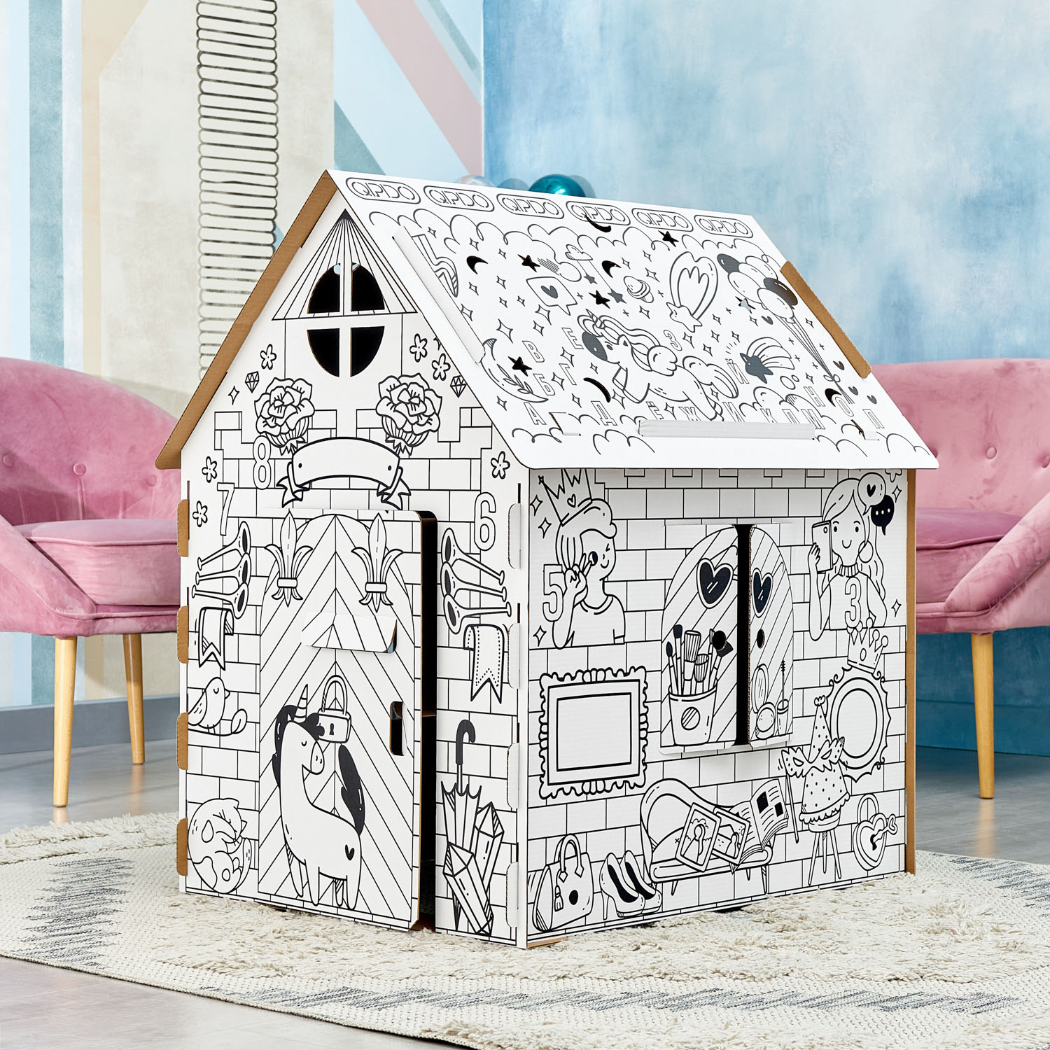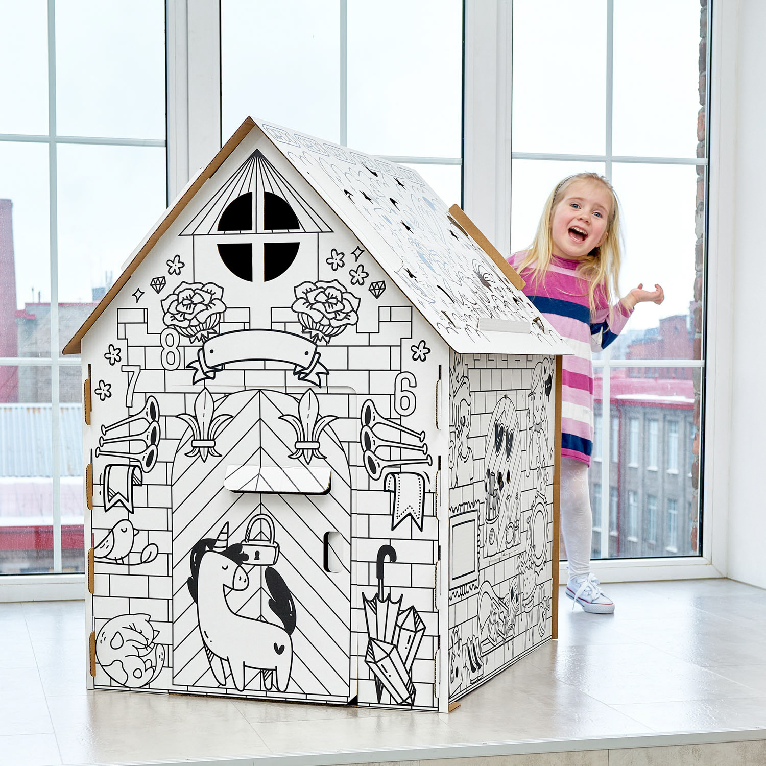 Развивающий домик - раскраска "QPDO" Принцесса и единороги, картонный домик , игровой, с алфавитом и цифрами