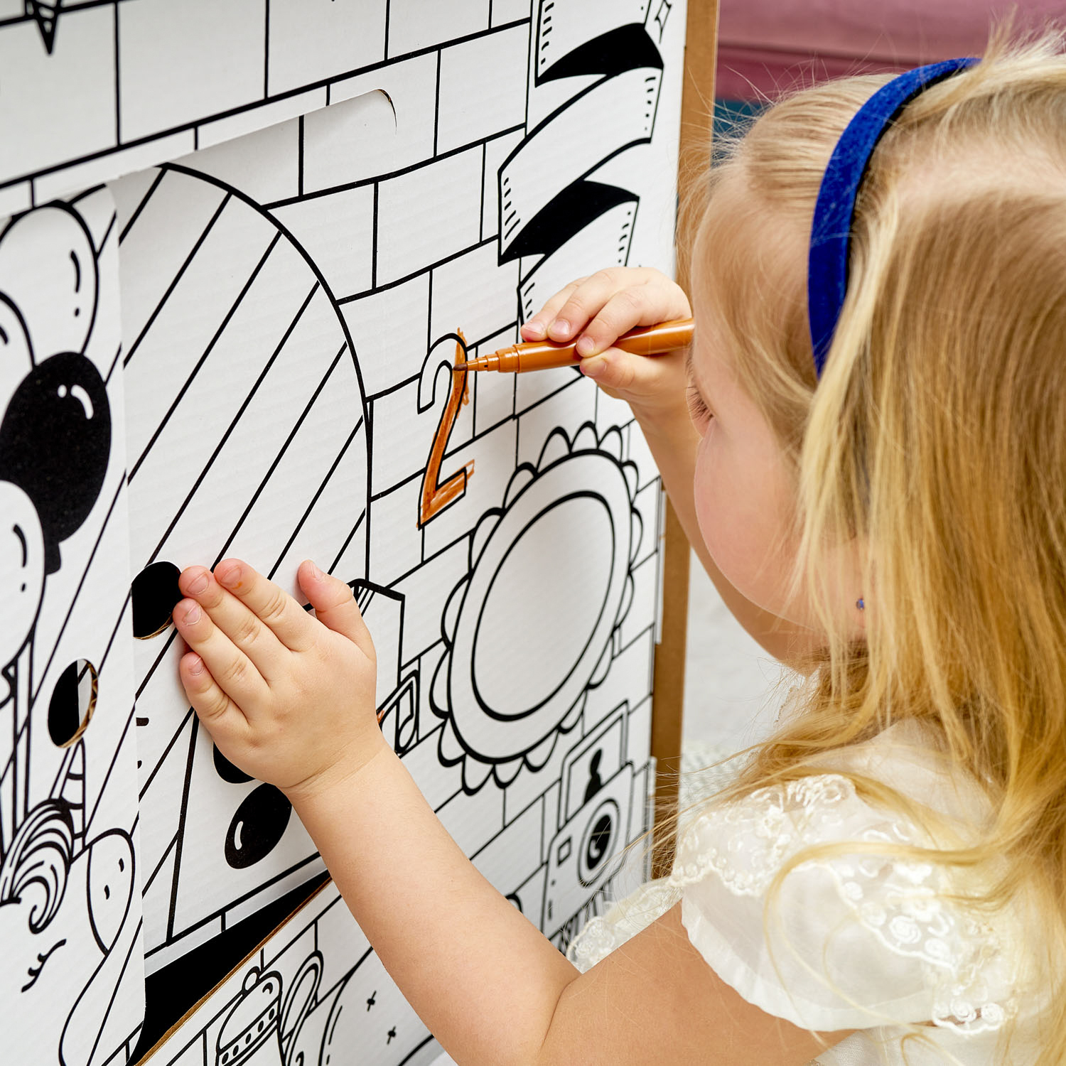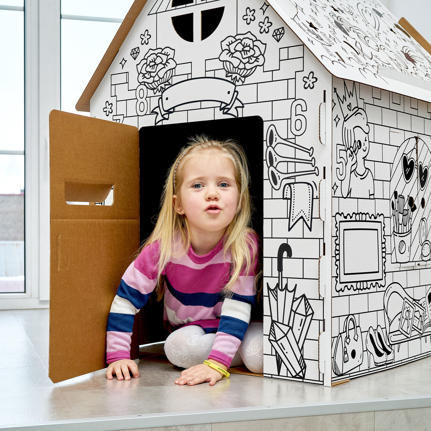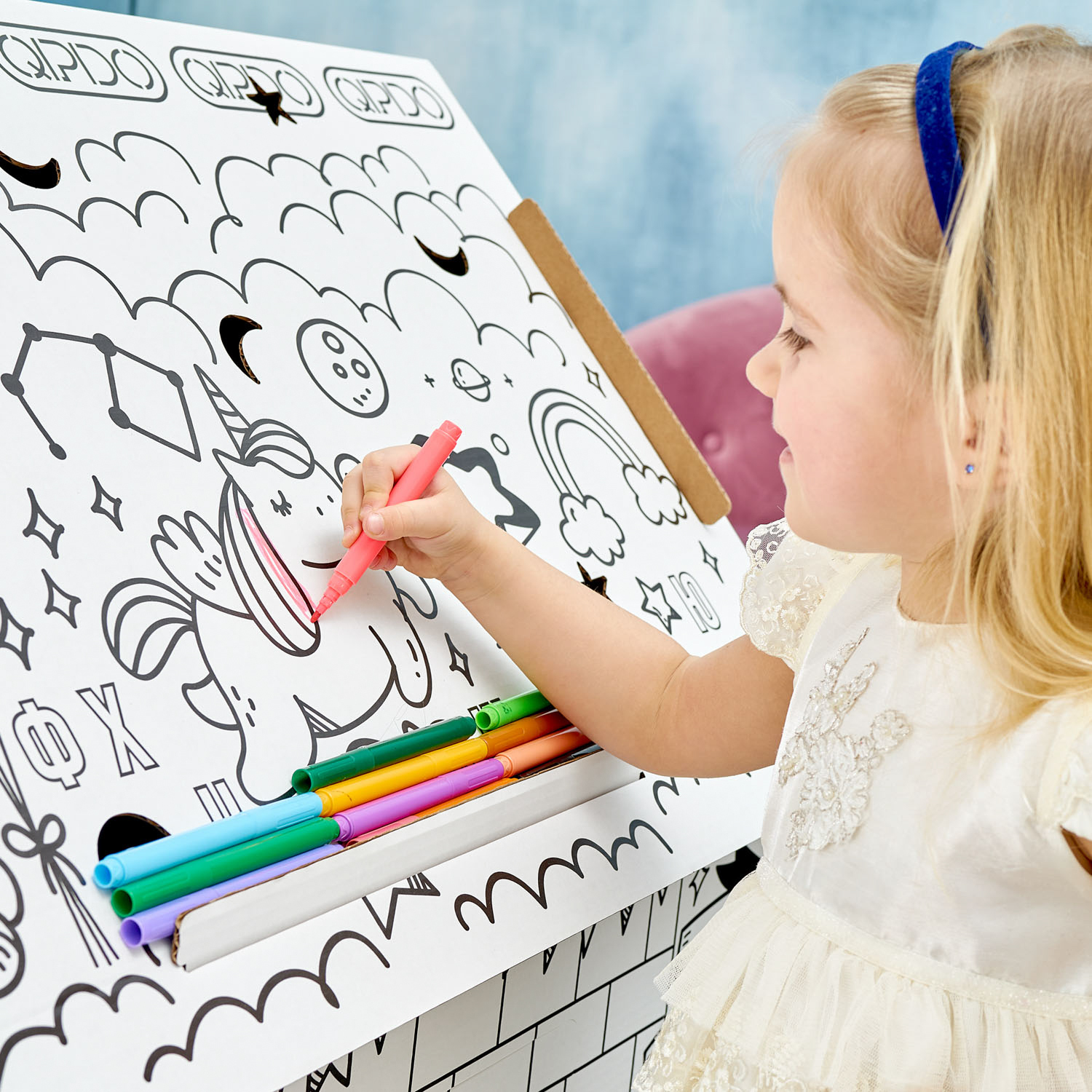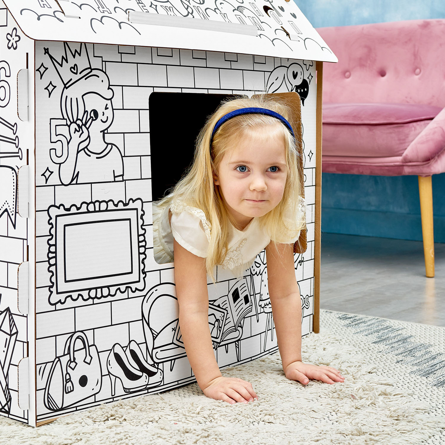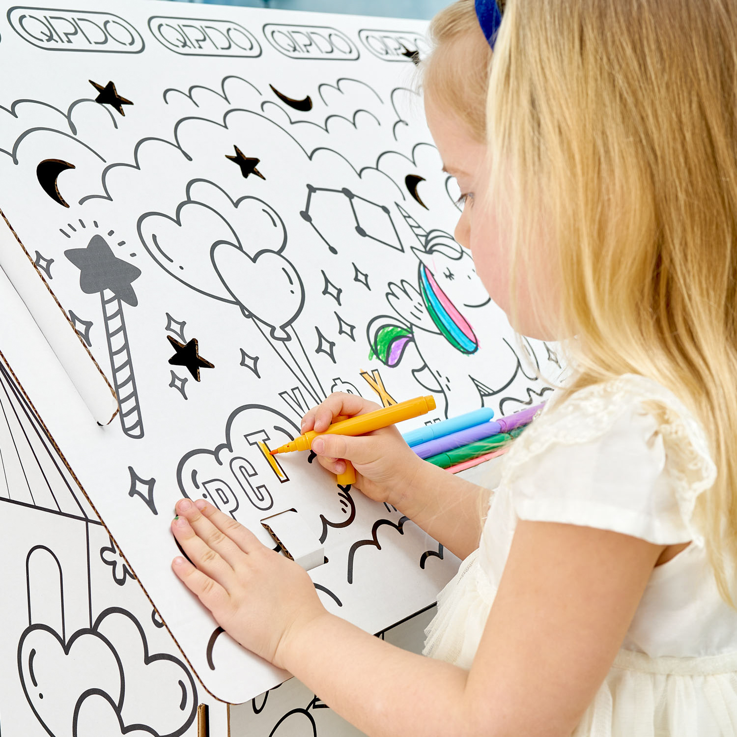 Развивающий домик - раскраска "QPDO" Принцесса и единороги, картонный домик , игровой, с алфавитом и цифрами